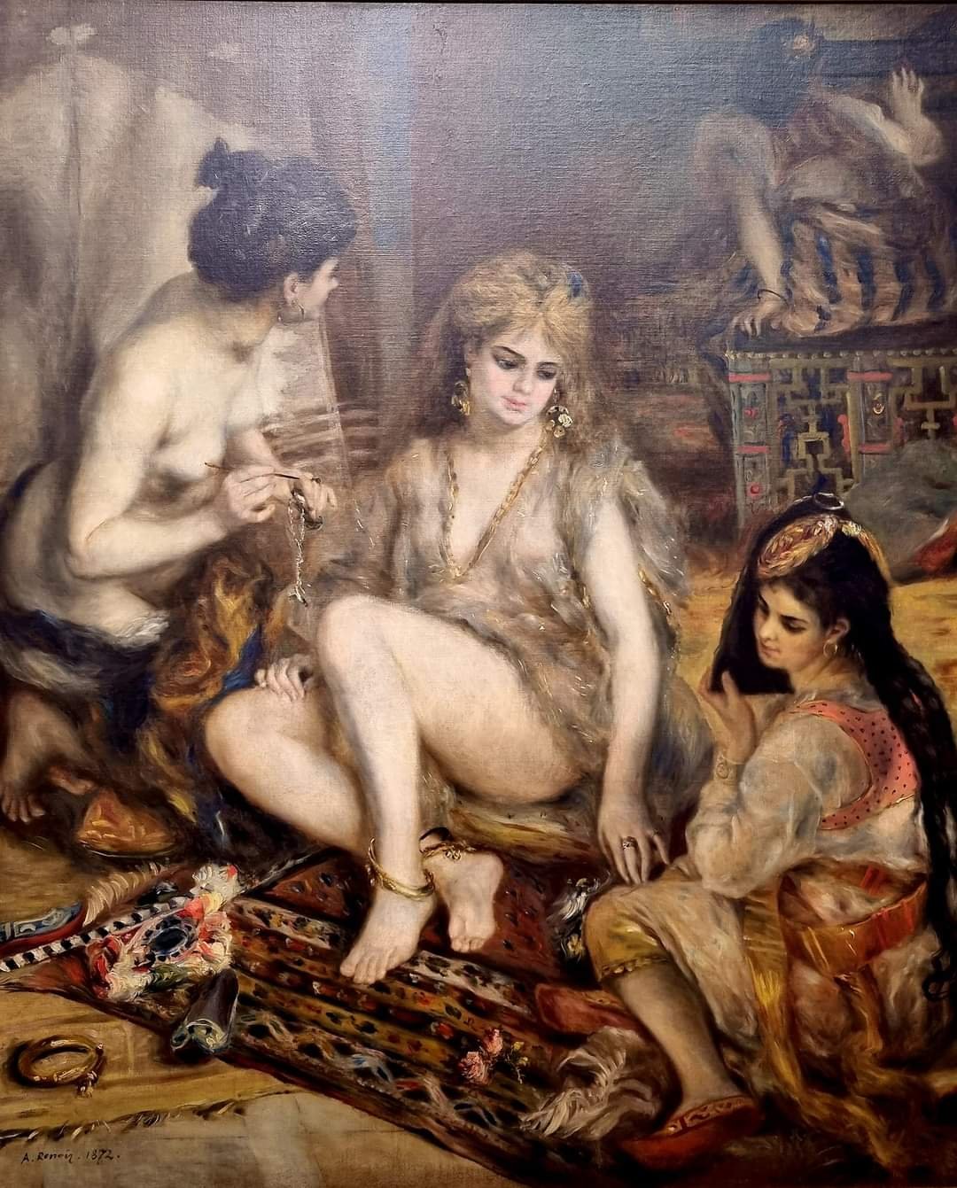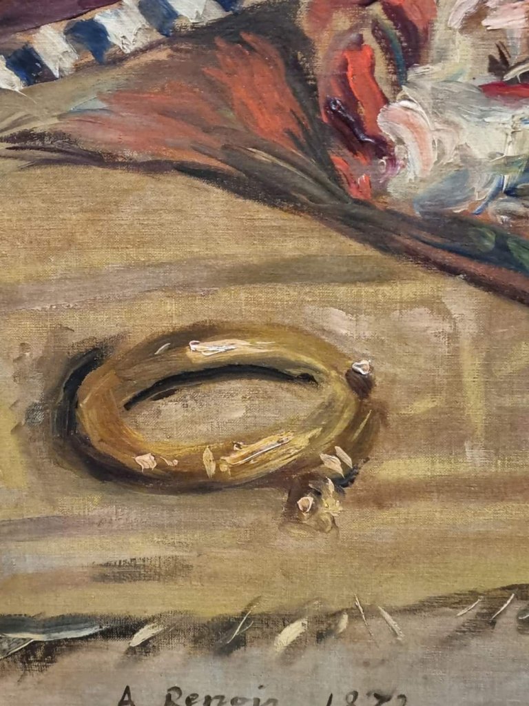 9. Mai 2022 Similar but not the same Auf den 1.Blick sieht es aus, als hätte Renoir in seinem Bild „Parisiennes habillées en Algériennes“ von 1872 mein Armband gemalt😉 zu sehen noch 6 Tage lang in der großen Impressionisten Ausstellung des Folkwang Museums in Essen Teilen mit: Auf X teilen (Wird in neuem Fenster geöffnet) X Auf Facebook teilen (Wird in neuem Fenster geöffnet) Facebook Gefällt mir Wird geladen … Veröffentlicht von yvonnenodaywithoutfinearts Oberstudienrätin für Englisch und Französisch im Ruhestand. Kunstschaffend und -begeistert und reisefreudig Zeige alle Beiträge von yvonnenodaywithoutfinearts