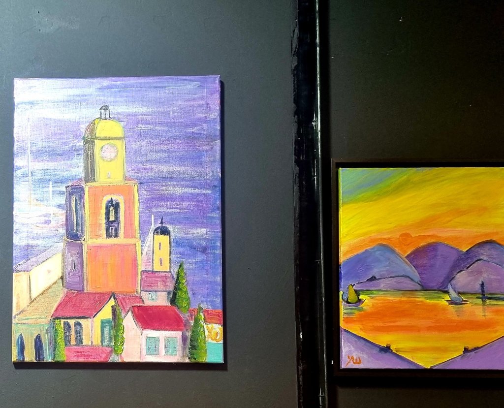 2mal „St. Tropez“ von Yvonne Wilken (einmal von 2020/2022: Acryl und Öl auf Leinwand 50×70 und einmal als Hommage an den Postimpressionisten Signac, 2022, Acryl auf Leinwand 40×50) @#wintergalerie Dortmund. Westenhellweg 86-88. Morgen wieder geöffnet von 12 -19 Uhr – und etwa von 14 Uhr an mit mir.