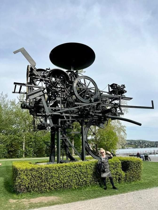 Der 3. Künstler, der an einem 22.5. geboren wurde, ist der Künstler der Kinetik in der Schweiz, vor dessen Werk ich letzten Monat am Zürichsee posierte: JEAN TINGUELY (1925-1991). Man findet noch viel mehr seiner beweglichen Objekte in dem ihm gewidmeten Tinguely-Museum am Basler Rheinufer. Übrigens gibt es dort auch Kunstwerke seiner Frau zu sehen: Niki de Saint-Phalle.