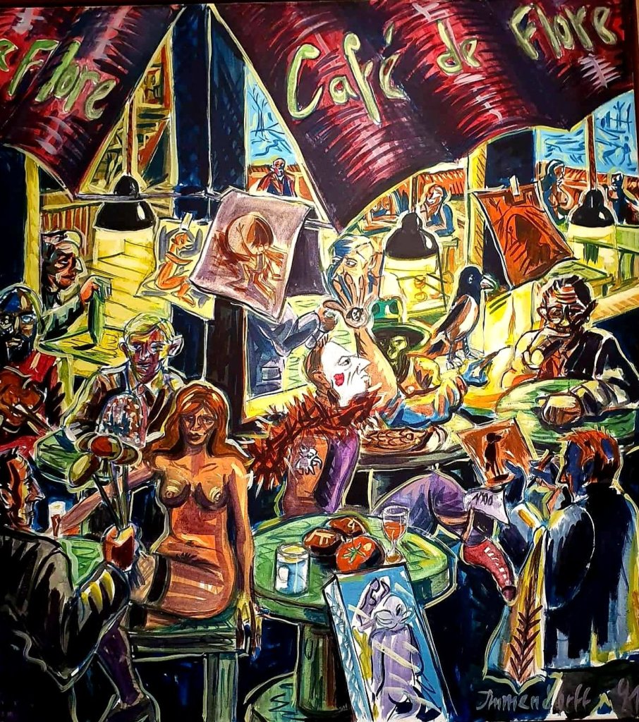 28. Mai 202228. Mai 2022 Café terrasse (35) by JÖRG IMMENDORFF Heute vor 15 Jahren starb JÖRG IMMENDORFF (1945-2007). Sein Bild „Café de Flore“ von 1991 sah ich 2020 im Museum Ostwall im U-Turm in meiner Heimatstadt Dortmund. Teilen mit: Auf X teilen (Wird in neuem Fenster geöffnet) X Auf Facebook teilen (Wird in neuem Fenster geöffnet) Facebook Gefällt mir Wird geladen … Veröffentlicht von yvonnenodaywithoutfinearts Oberstudienrätin für Englisch und Französisch im Ruhestand. Kunstschaffend und -begeistert und reisefreudig Zeige alle Beiträge von yvonnenodaywithoutfinearts