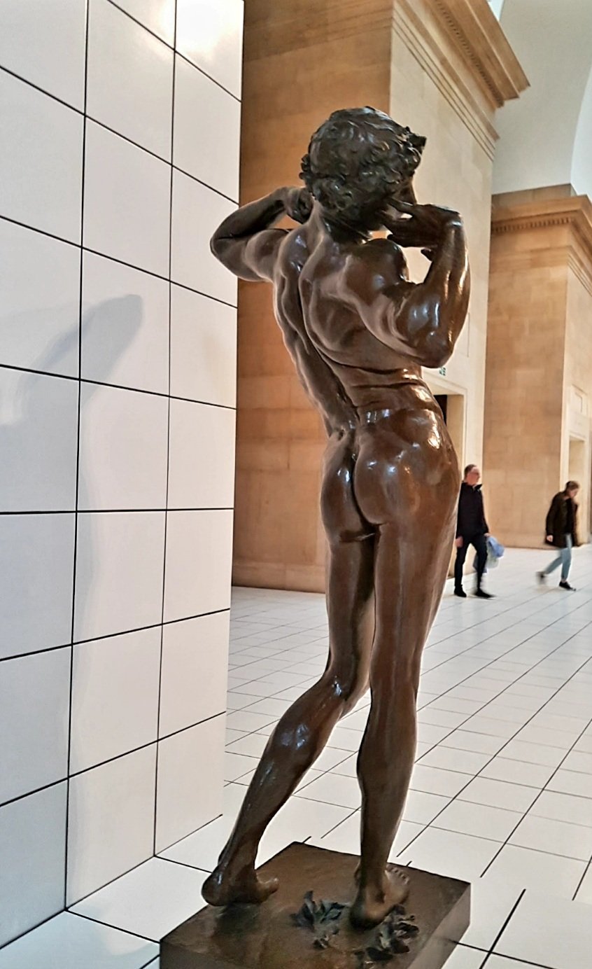 Einen Tag zu spät kommt der Männerakt, den ich normalerweise immer am 11.jedes Monats losschicke – bei meinem „Kramen“ in alten Fotos von Londonreisen, um Material zum gestrigen Artist of the Day, John Constable, zu finden, „stolperte ich über diesen schönen „Sluggard“, den Faulpelz, eine der seltenen Plastiken des mehr als Maler bekannt gewordenen – sein 1. Bild kaufte Queen Victoria – SIR FREDERIC LEIGHTON (1830-1896). Ich fotografierte ihn 2018 in der Tate Gallery.