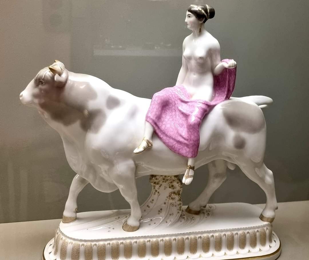 Ich begrüße meinen Gast aus Zürich, der wegen der Kunst in Dortmund ist (Lesung Galerie Lensing Carré/Ausstellung Pasta Heaven und Ausstellung Alte Schmiede Huckarde) mit seinen Sternzeichen: Stier, Aszendent Jungfrau – mit einem wundervollen Jugendstil-Stier mit Europa aus unserem Dortmunder Museum für Kunst und Kulturgeschichte – Porzellanskulptur von Adolph Amberg (1874-1913) von 1904/05