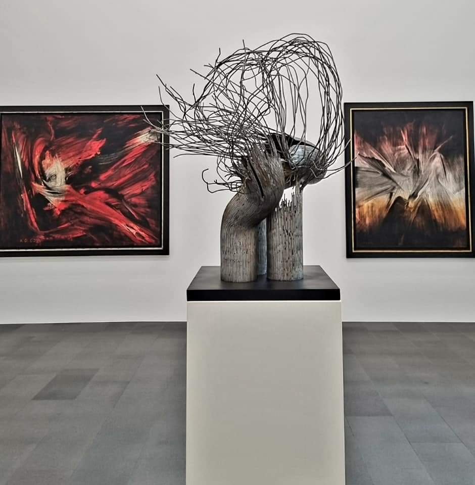 Heute hätte MARTIN MATSCHINSKY (1921-2020) seinen 101. Geburtstag. Mit seiner Frau Brigitte Denninghoff (1923-2011) kreierte er schöne Werke aus Messing und Zinn wie der „Taifun“ von 1951(vor den Bildern von K.O. Götz) und „Afrika“ von 1962, die beide im Museum Küppersmühle in Duisburg zu bewundern sind.