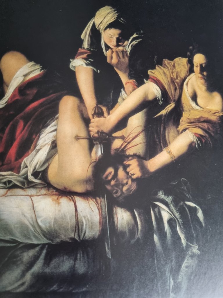 2 Rebellinnen in der Kunst und im Leben sind am 8.7. geboren: KÄTHE KOLLWITZ (1867-1945) mit 2 Selbstbildnissen aus dem Käthe-Kollwitz-Museum in der Berliner Fasanenstraße (lachend von 1888) und ARTEMISIA GENTILESCHI (1593-1654) mit dem verblüffend realistischen Bildnis von „Judith und Holofernes“ von 1620 (außerordentlich blutrünstig und entschlossen gemalt für eine Frau des 16./17. Jahrhunderts)
