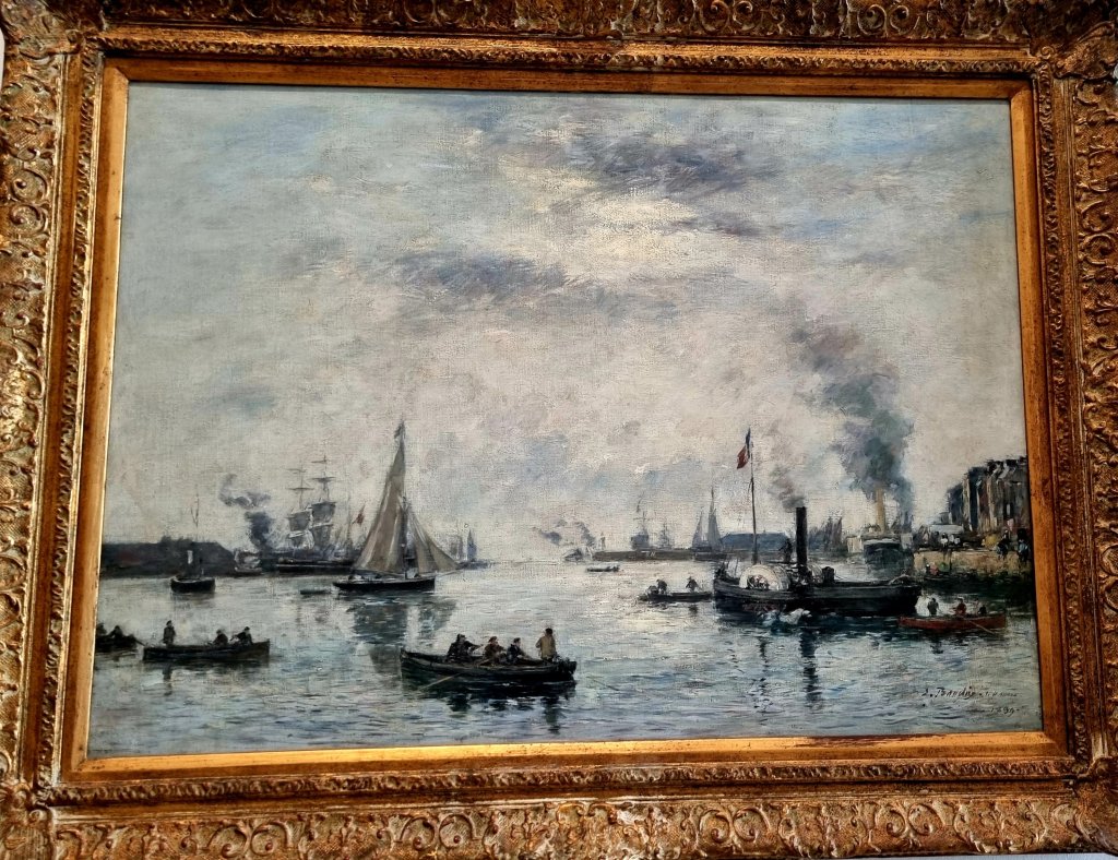 EUGÈNE BOUDIN, (amüsanterweise gibt es seinen Nachnamen gerade in der Normandie als wohlschmeckende, würzige Blutwurst) (1824-1898), Freiluftmaler und Vorläufer des Impressionismus aus Honfleur, malte die benachbarte Hafenstadt Le Havre im Jahr 1889 in grau-silbrig-weißen Farben. Er ist mit seinem Geburtstag am 12.7. der 1.heutige #artistoftheday. Das Bild sah ich vor wenigen Tagen in der Sammlung des Museum Würth Künzelsau