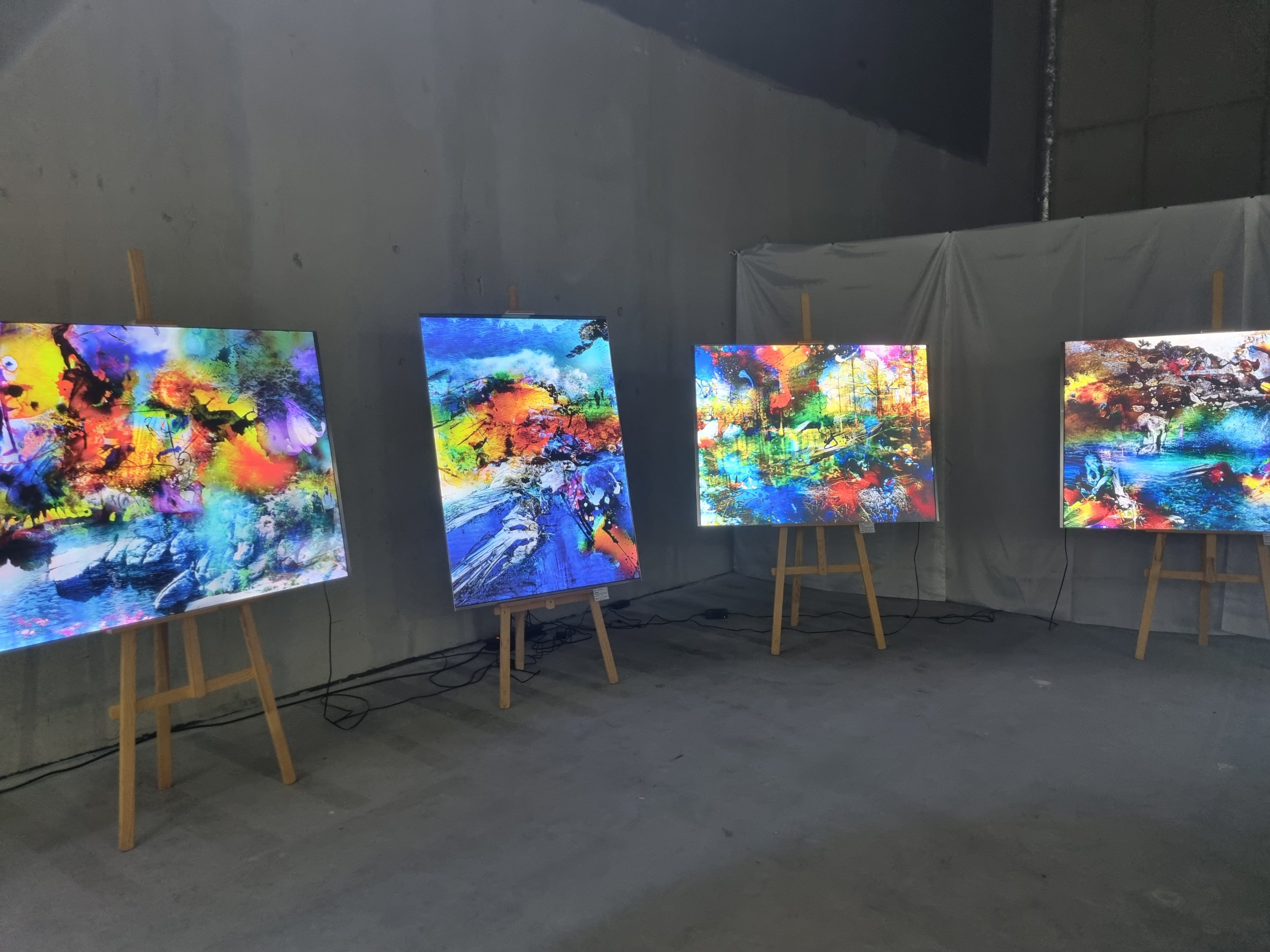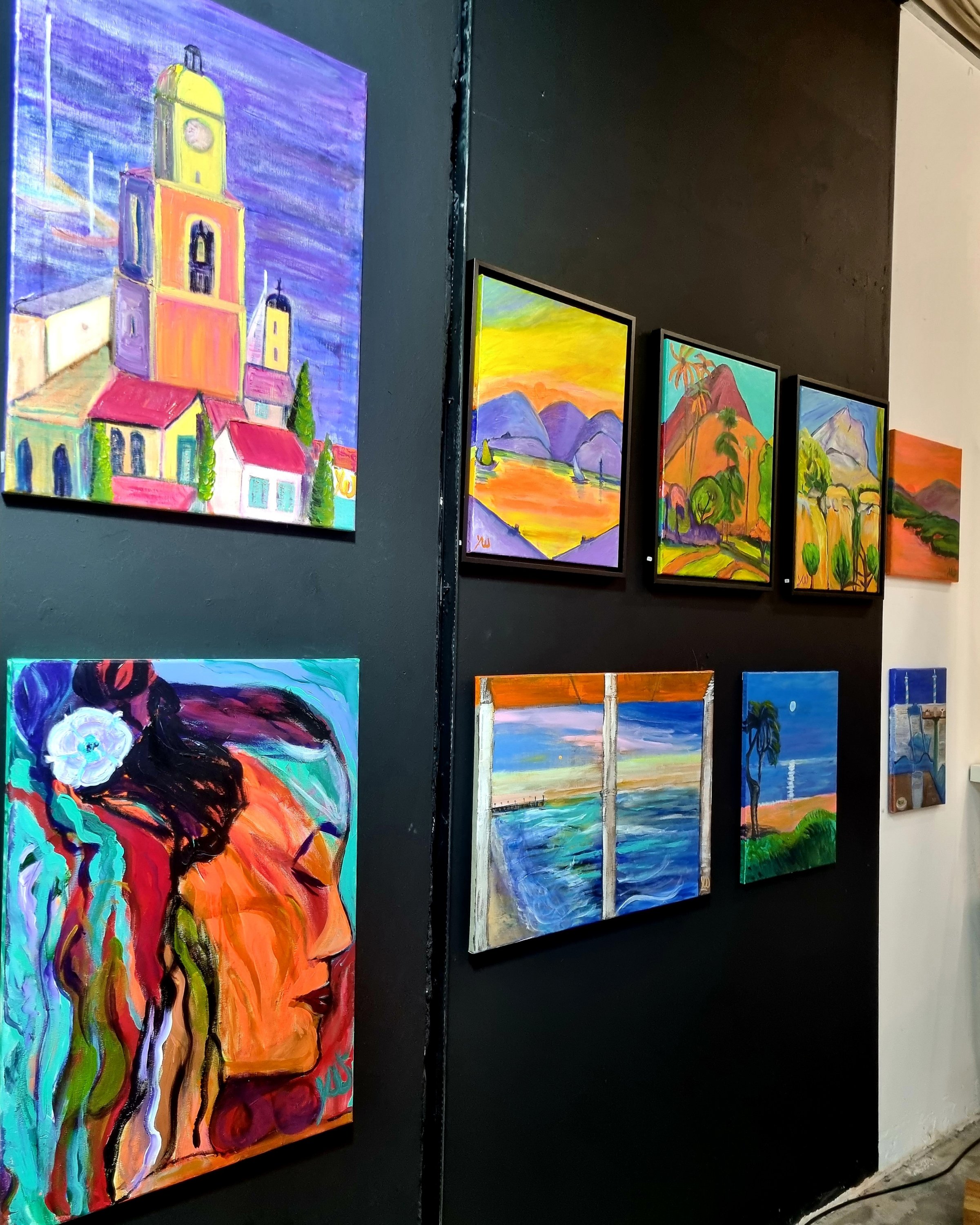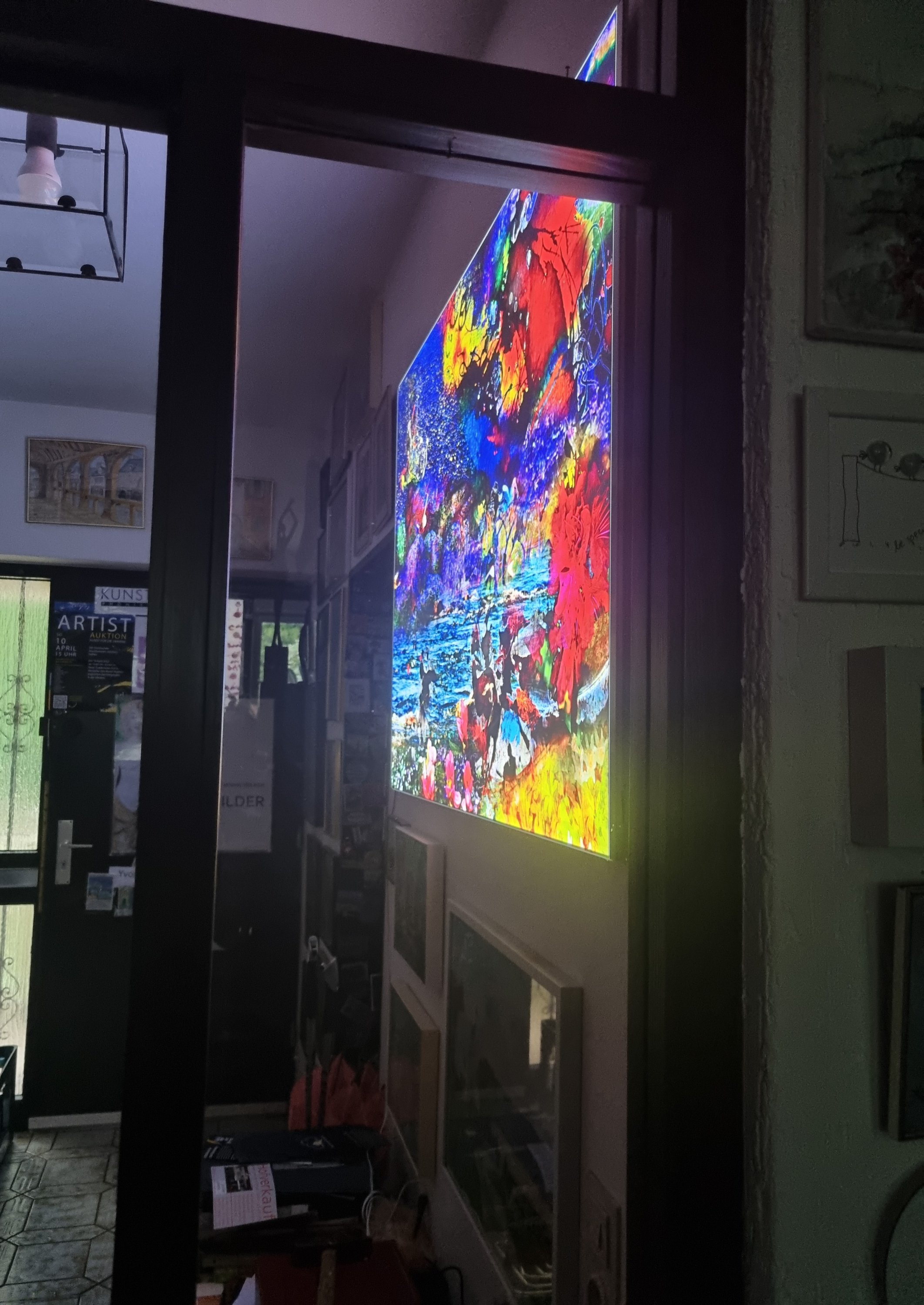 in der Wintergalerie Dortmund, Westenhellweg 86-88 und bei mir im muséeyvonne 😉😎: das wunderschön farbenfrohe Leuchtbild „ohne Zeugen“ von Rüdiger Philipp wechselte von der Galerie zu mir nach Hause, während Rüdiger eine neue Kreation seiner wundervollen Lichtkunst (nur noch bis Ende Juli in der Wintergalerie zu sehen) präsentiert und das frisch von mir gemalte Acrylbild „Mond über Malaga“ jetzt an meiner Wand in der Wintergalerie hängt. Meine „Sternzeichen-Unikate“ hängen außerdem an einer unserer Säulen.