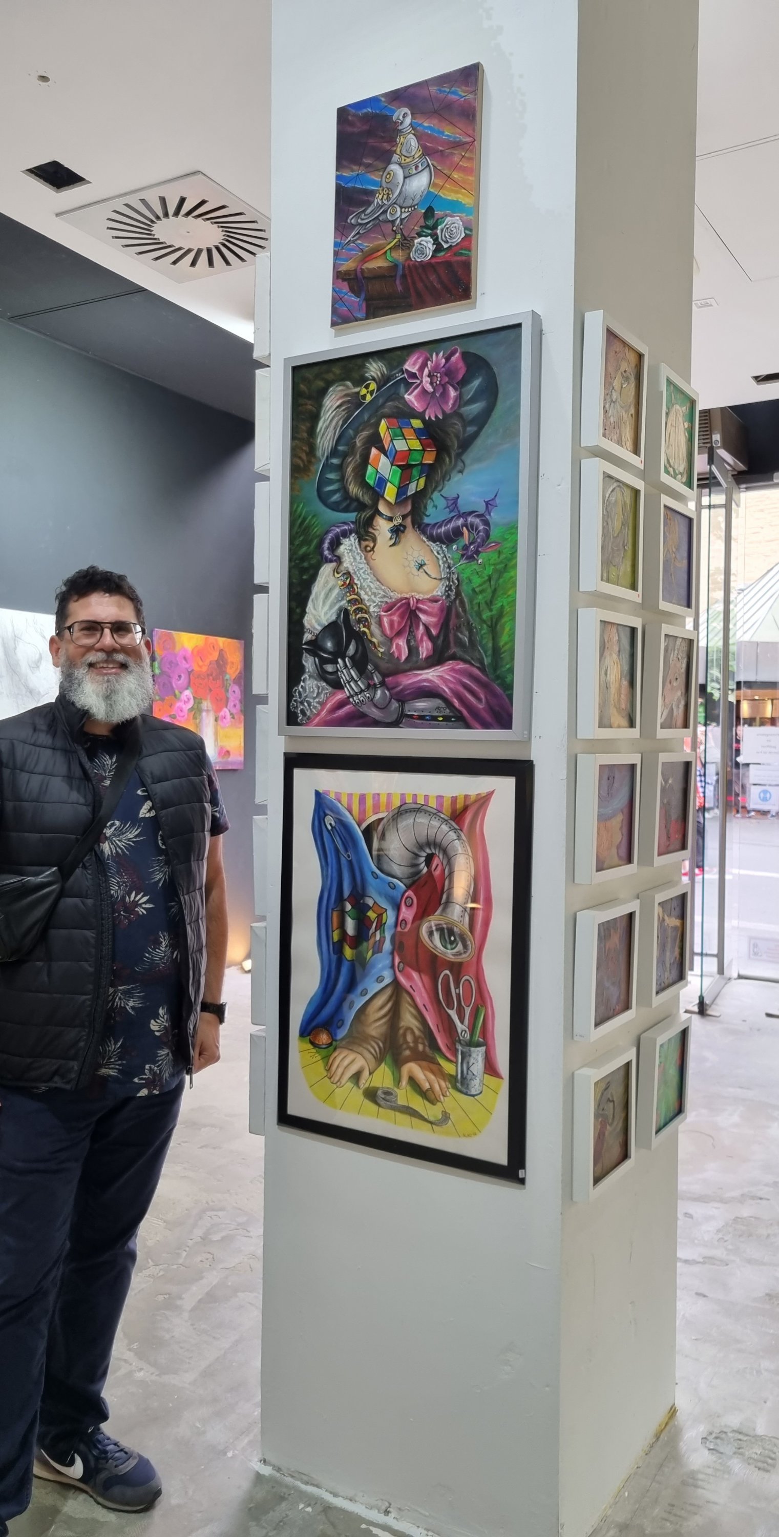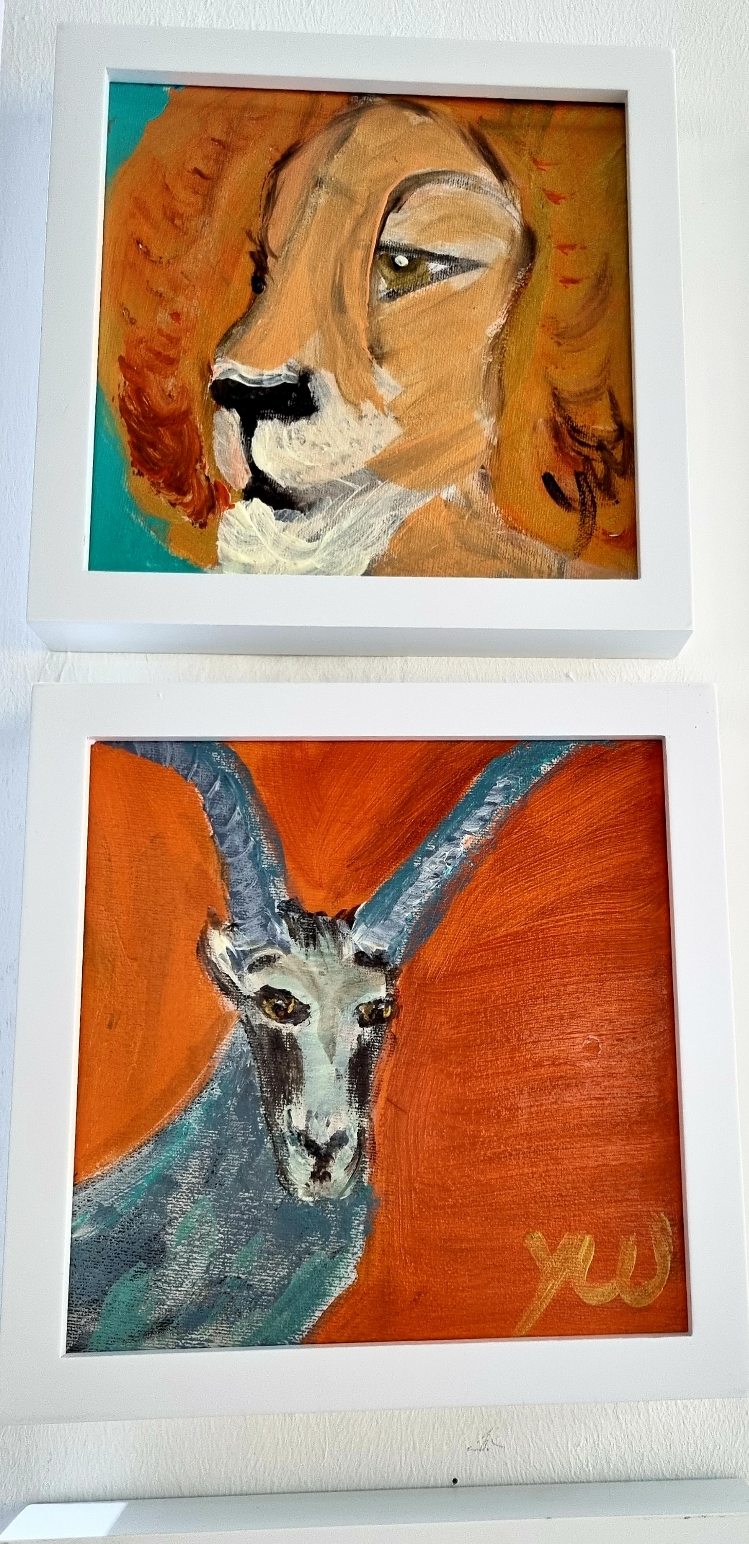 Dortmund, Westenhellweg 86/88: neben den tollen neuen Künstlern vom Julibeginn (ALESSANDRO ALMO, THOMAS HUGO und FELIX THOMAS, vom Wiederbeginn von KATI RAKUS ganz zu schweigen und RÜDIGER PHILIPP, der nur noch bis zum 12.8. mit seiner tollen Lichtkunst zu sehen ist) und dem gestrigen Neuzugang aus Persien, musste ich, weil letzte Woche zwei meiner Sternzeichenunikate verkauft wurden, einen neuen „Steinbock“ und einen neuen „Löwen“ malen und aufhängen. (Acryl auf Leinwand, 20×20, gerahmt)😉