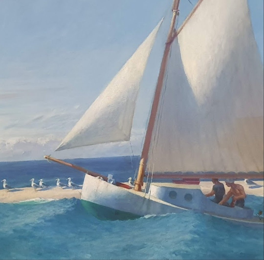 Niemand hat so schön und lebendig Segelboote gemalt (dagegen wirken seine Menschen – vermutlich als Aussage gewollt – ja immer etwas traurig und einsam) oder auch das grandiose Grün seiner amerikanischen Heimat so satt auf die Leinwand gebracht wie EDWARD HOPPER, der heute seinen 140. Geburtstag feiern würde. Ich habe alle 4 Bilder in der beeindruckenden Retrospektive in der Fondation Beyeler bei Basel im Juli 2020 fotografiert. Teilweise sind es Details der ganzen Landschaft.
