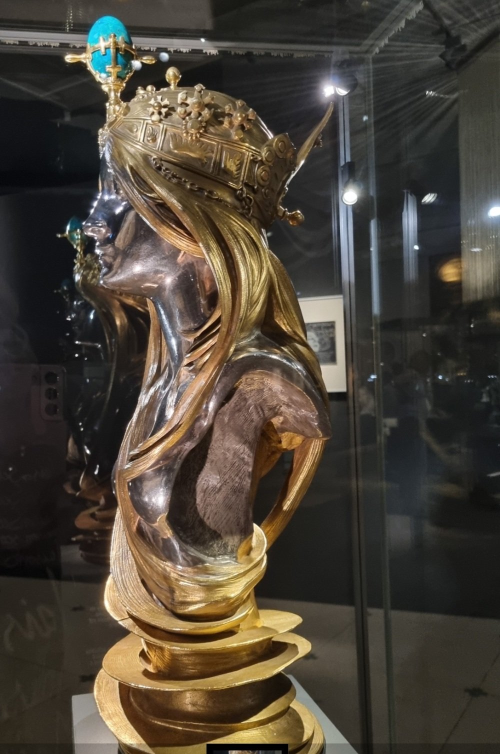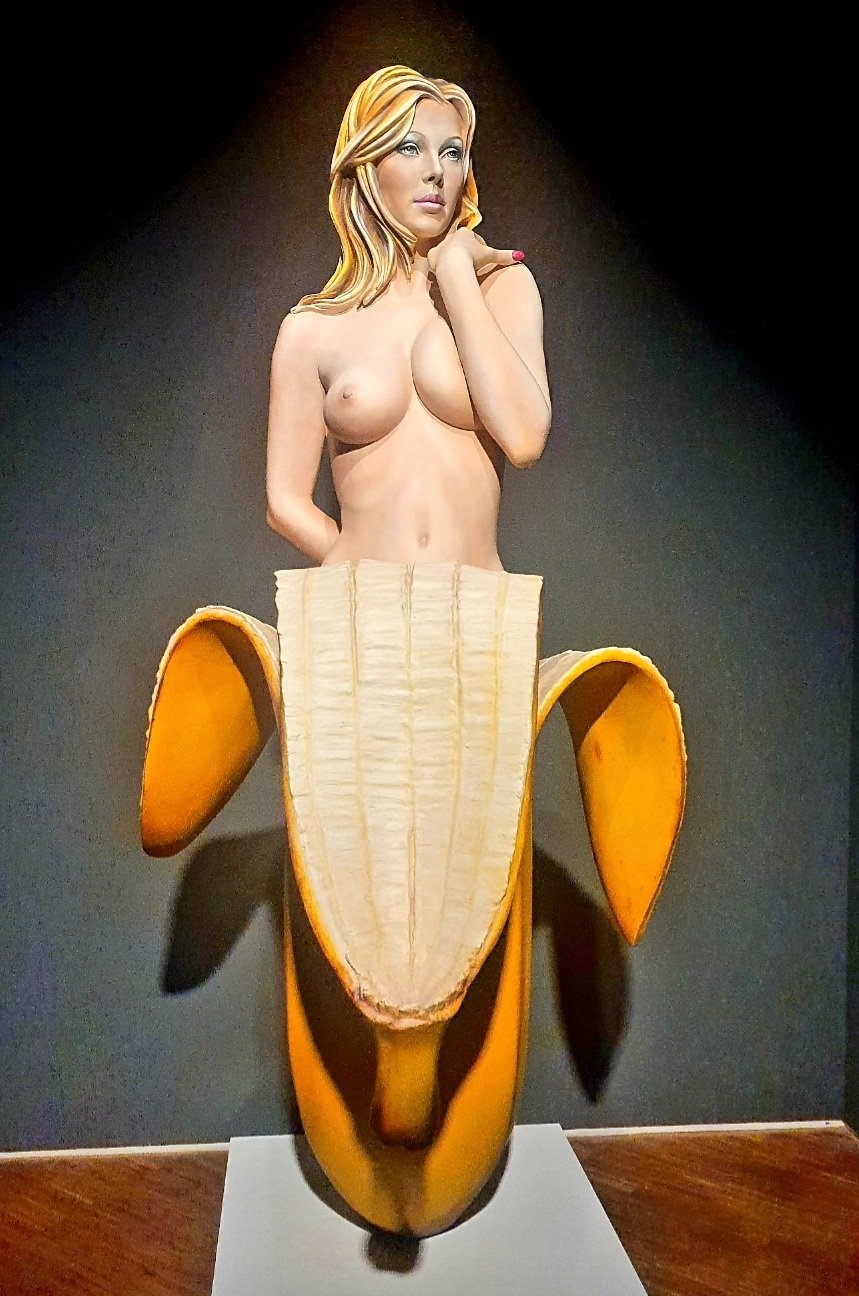 Alle 4 sind an einem 24.7. geboren und hatten noch eine Gemeinsamkeit: sie konzentrierten sich in ihrer Kunst auf die Darstellung von Frauen – was besonders für den tschechischen Jugendstil-Künstler ALFONS MUCHA (1860-1939: hier mit einer Bronze von 1900, gesehen vor 2 Wochen im Karlsruher Schloss/Landesmuseum in der Ausstellung „Göttinnen des Jugendstils“) gilt, man erzählt sich, dass er, wenn er Auftragsportraits von Männern schuf, nie zufrieden war, was auch für die Portraitierten anstrengend war. Am wenigsten gilt das für den in der Ukraine (Nähe Charkiv) geborenen ILJA REPIN (1844-1930), denn im Museum Barberini in Potsdam sah ich im letzten November – wie auch im Museo Ruso 2016 in Malagá – ebenso seine Landschaften im impressionistisch-realistischen Stil. Doch sein „Portrait der Schauspielerin Bella Gorskaya“ aus dem Jahr 1910 wurde sehr berühmt. Für seine hyperrealistischen Frauenfiguren als Skulptur (wie „Chicita Banana“ von 2007, gesehen 2020 im Osthaus Museum Hagen ) oder gemalte Figuren, sehr sexy wie in der Werbung in Szene gesetzt wurde der Amerikaner MEL RAMOS (1935-2018) berühmt. Auch vom 4. Künstler, ebenfalls Amerikaner, ALEX KATZ, der heute seinen 95. Geburtstag feiert, kennt man seine in typisch moderner Weise dargestellten Frauenfiguren. In dem Bild von 1976 hat er außer dem niedlichen Hund der Familie Kluge noch 3 Familienmitglieder portraitiert. Gesehen in der Würth Kunsthalle in Schwäbisch Hall vor kurzem.