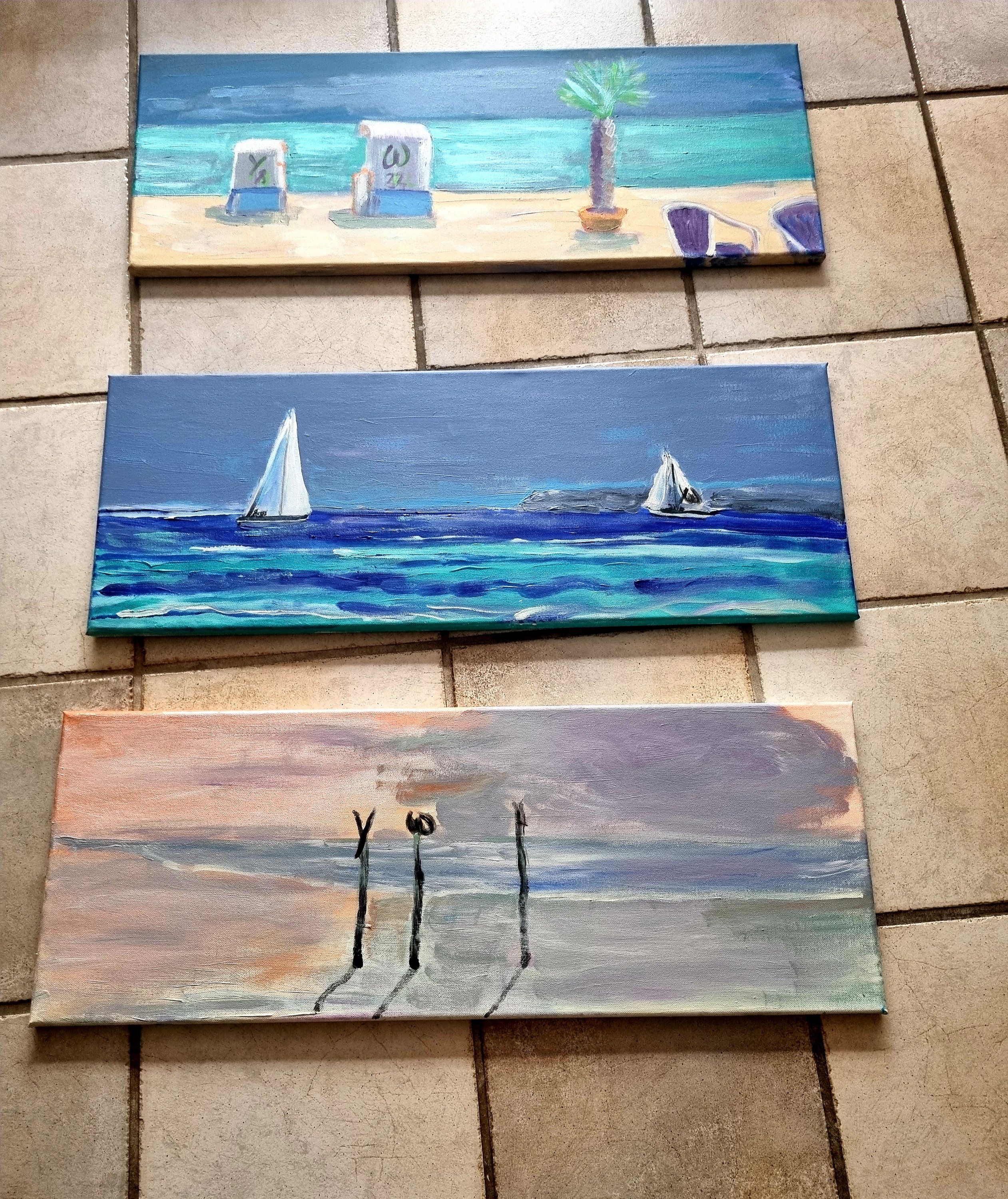 16. August 202216. August 2022 In eigener Sache: j’aime les triptyques (43) Noch ganz frisch: der „Ostsee-Triptychon“ von Yvonne Wilken, Acryl auf Leinwand, je 80×30: „le nuage“ , „les voiles“, „avant l’orage“ – bald in der Wintergalerie in Dortmund am Westenhellweg 86/88 Teilen mit: Auf X teilen (Wird in neuem Fenster geöffnet) X Auf Facebook teilen (Wird in neuem Fenster geöffnet) Facebook Gefällt mir Wird geladen … Veröffentlicht von yvonnenodaywithoutfinearts Oberstudienrätin für Englisch und Französisch im Ruhestand. Kunstschaffend und -begeistert und reisefreudig Zeige alle Beiträge von yvonnenodaywithoutfinearts