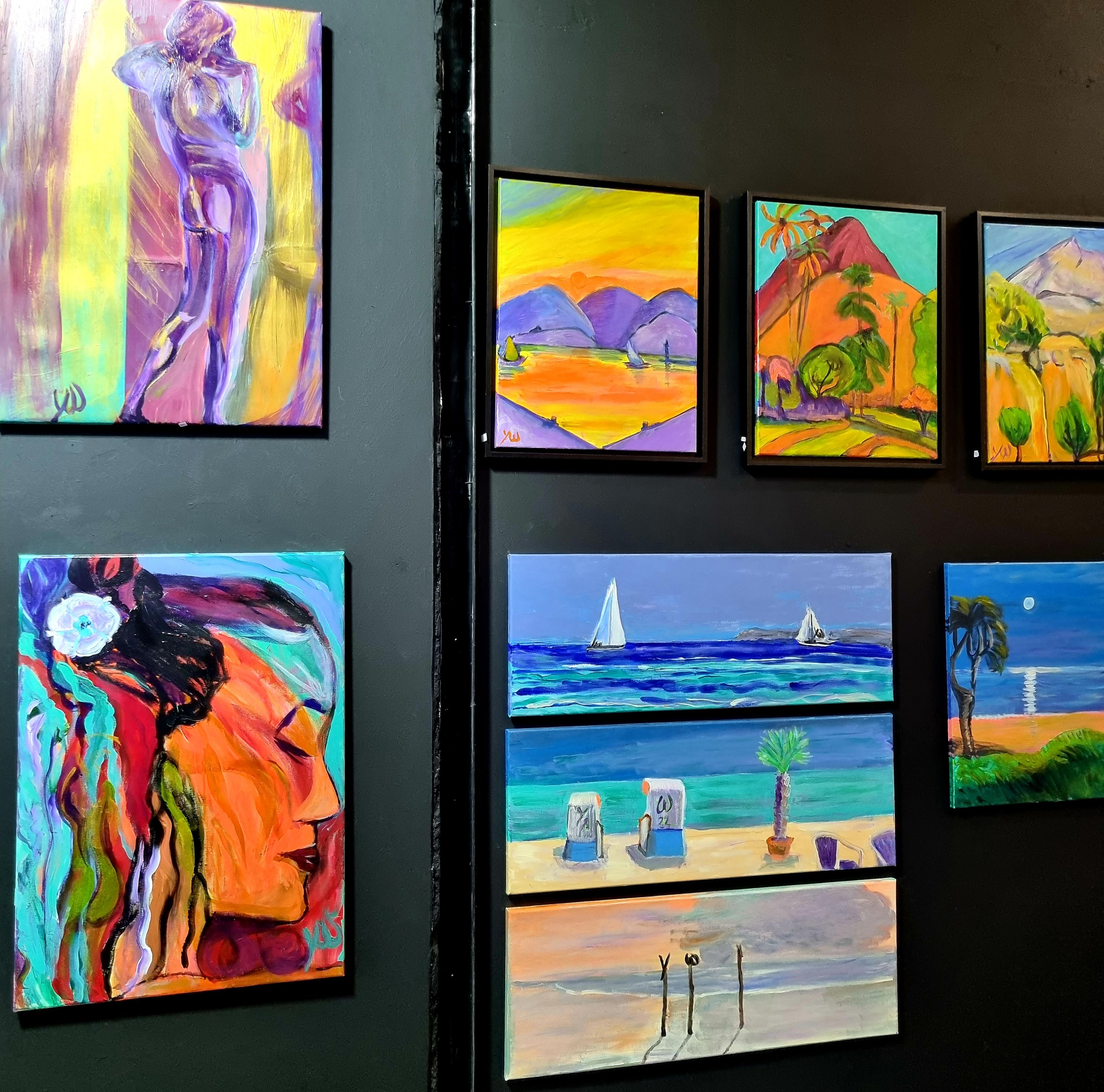 Bilderwechsel in der wintergalerie: zweimal Yvonne Wilken Paintings im Triptychon: die ganze Zeit sind ja schon die schwarz Gerahmten vom Postimpressionismus-Triptychon zu sehen. Jetzt ist noch ein Ostsee-Triptychon dazugekommen. Meine Wand ist eine wirkliche Urlaubswand geworden😉🏖🌴