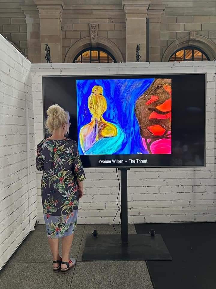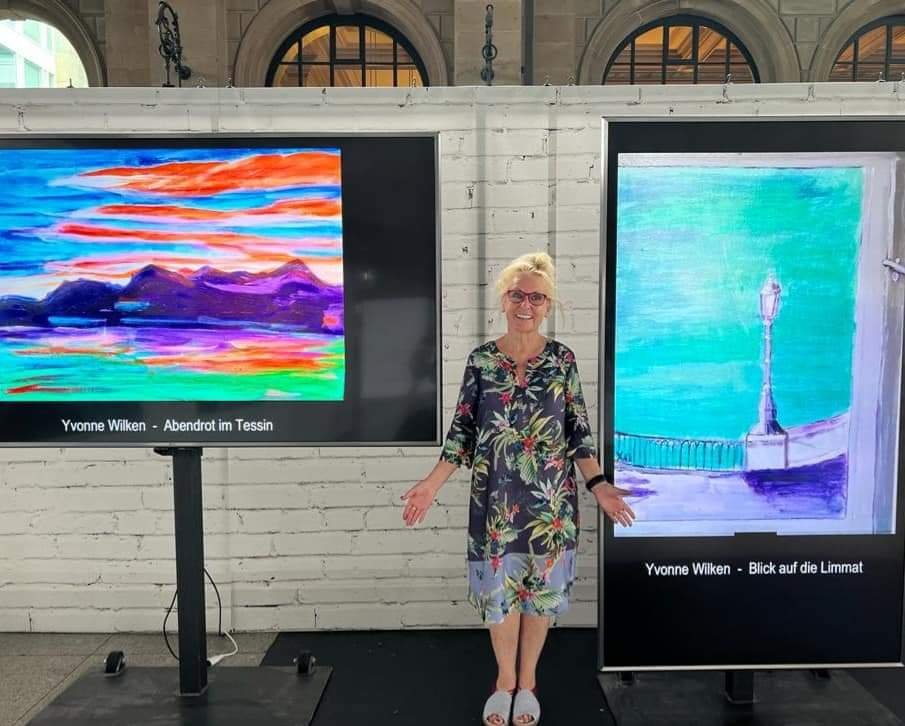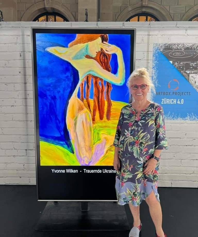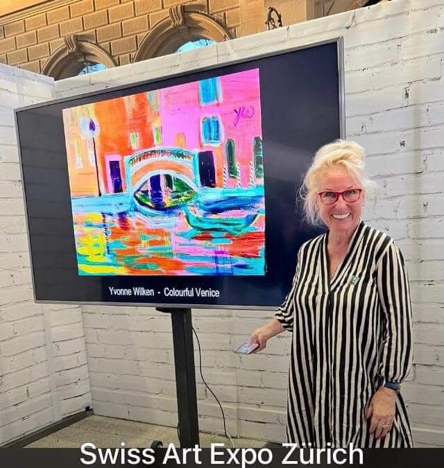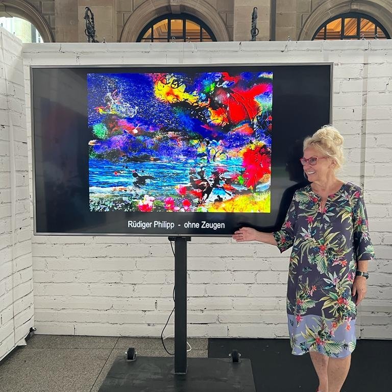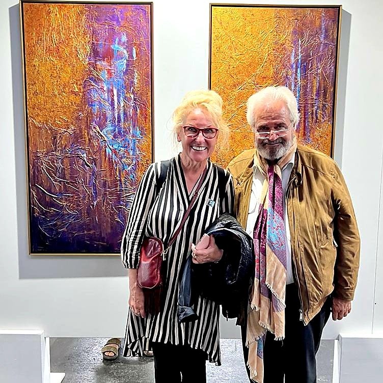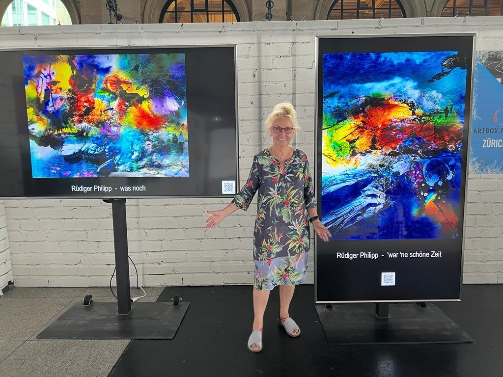 Nachlese SwissArtExpo vom artboxproject Zürich, 24.-28.8.22: es war wieder ein sehr schönes Erlebnis, bei dem ich auch die Bilder von Künstlerfreunden sah (z. B. Patrizia Zoller, Rüdiger Philipp und seine Leuchtbilder und der bulgarische Künstler Drago Dochev und seine pastos aufgetragenen Gemälde) und neue Kontakte sich ergaben…Mit Robert Kahnt aus Zürich vor Patrizia Zollers goldenen Prachtstücken