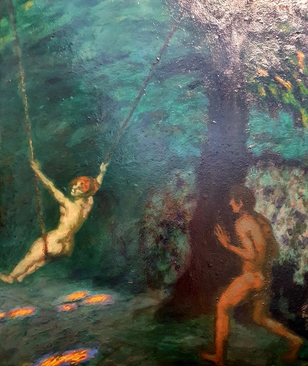 2 Künstler hatten gestern ihren Todestag : FRANZ VON STUCK (1863-1928), hier vertreten mit der „Amazone“ von 1920, der „Pietà“ von 1891 (beide im Walraff-Richartz-Museum in Köln gesehen) und der „Schaukel im Wald“ von 1912, Alte Nationalgalerie Berlin. Noch am gestrigen Tag sah ich im von der Heydt Museum in Wuppertal das kleine kinetische Werk von JEAN TINGUELY (19..-1991), dem berühmtesten Schweizer Künstler der Kinetik. Sein dagegen groß geratenes „kleines Männchen“ sah ich im Juni im Duisburger Museum Küppersmühle.