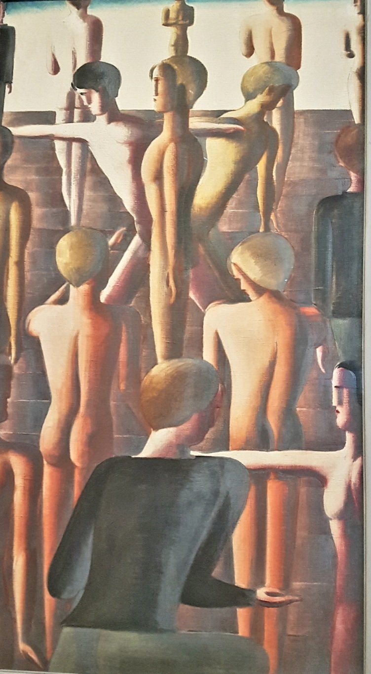 Der Bauhauskünstler war am 4.9.1888 (-1943) geboren und in seinen Werken meistens mit seinem großen Thema beschäftigt der Menschengruppe im Raum. Ich sah seine „Vierzehnergruppe“ aus dem Jahr 1930 und „Fünfzehnergruppe“ von 1930 so wie seine 1929 entstandenen „Figuren im Anschnitt mit schwarzen Streifen“ in den großartigen Museen Lehmbruck Museum Duisburg , Museum Ludwig Köln , Von Der Heydt-Museum Wuppertal und Kunsthaus Zürich in den Jahren 2019 und 2020