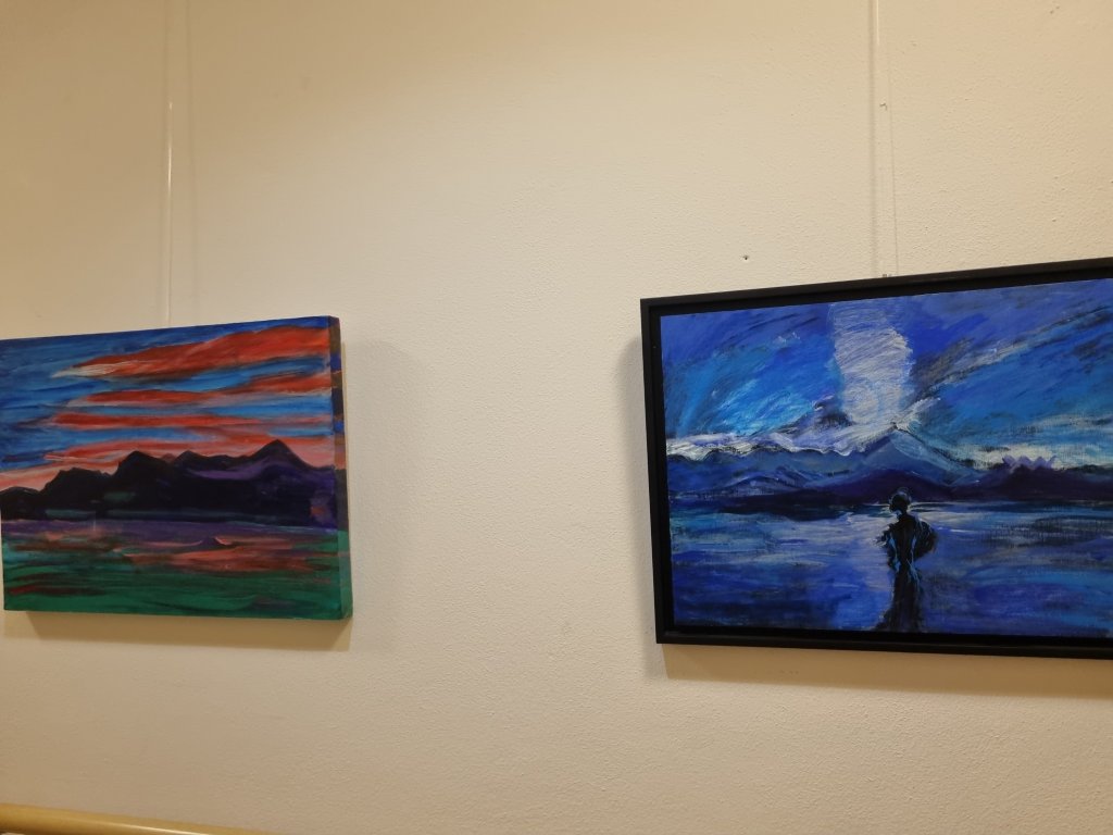 Hermann-Keiner-Haus der Anthroposophen (Dortmund. Mergelteichstr.47) im schönen Stoffregen-Saal und im Gang des Hauses hinter dem Haupteingang und der Rezeption (17 Landschaftsbilder von Yvonne Wilken)