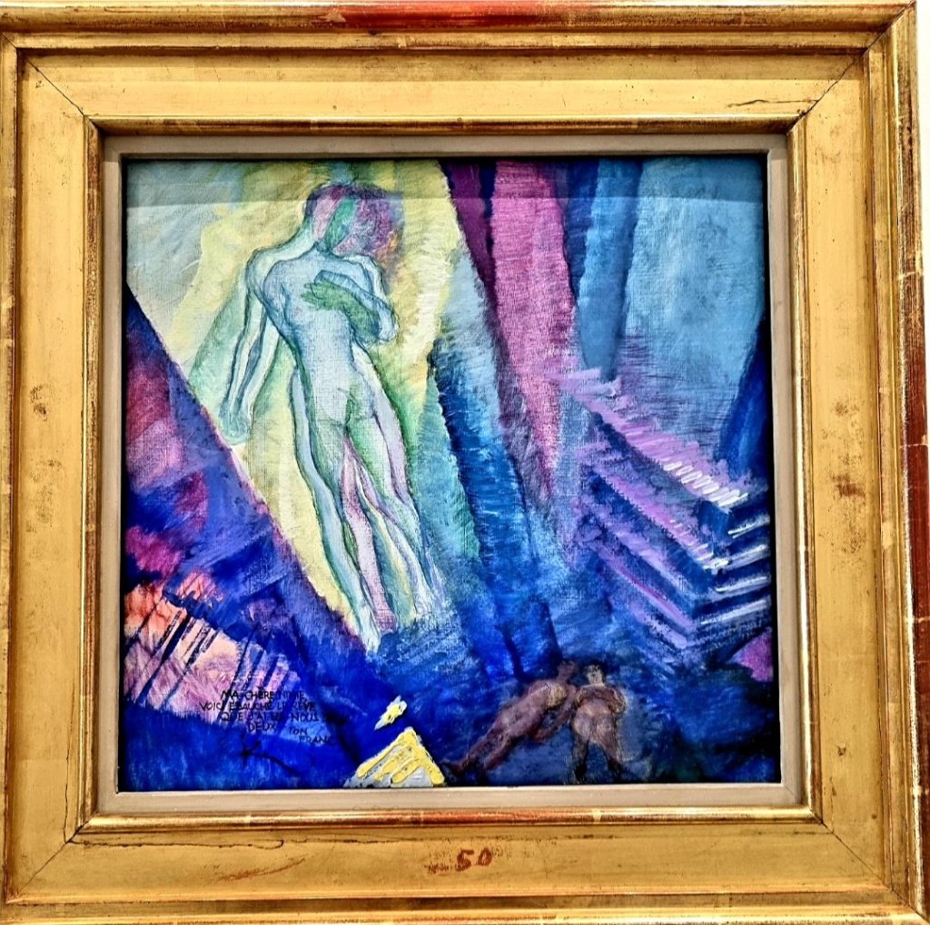 “ L’Aurore“ von 1937 vom belgischen Surrealisten PAUL DELVAUX (1897-1994), gesehen 2019 im Peggy Guggenheim Museum in Venedig, und eines meiner Lieblingsgemälde aus dem Kunstmuseum Bochum „Traum“ des tschechischen Malers FRANTIŠEK KUPKA (1871-1957) der das Thema Kuss und Umarmung in der Kunst wirklich traumhaft bearbeitet – mit einer bezaubernden Widmung für eine Freundin.