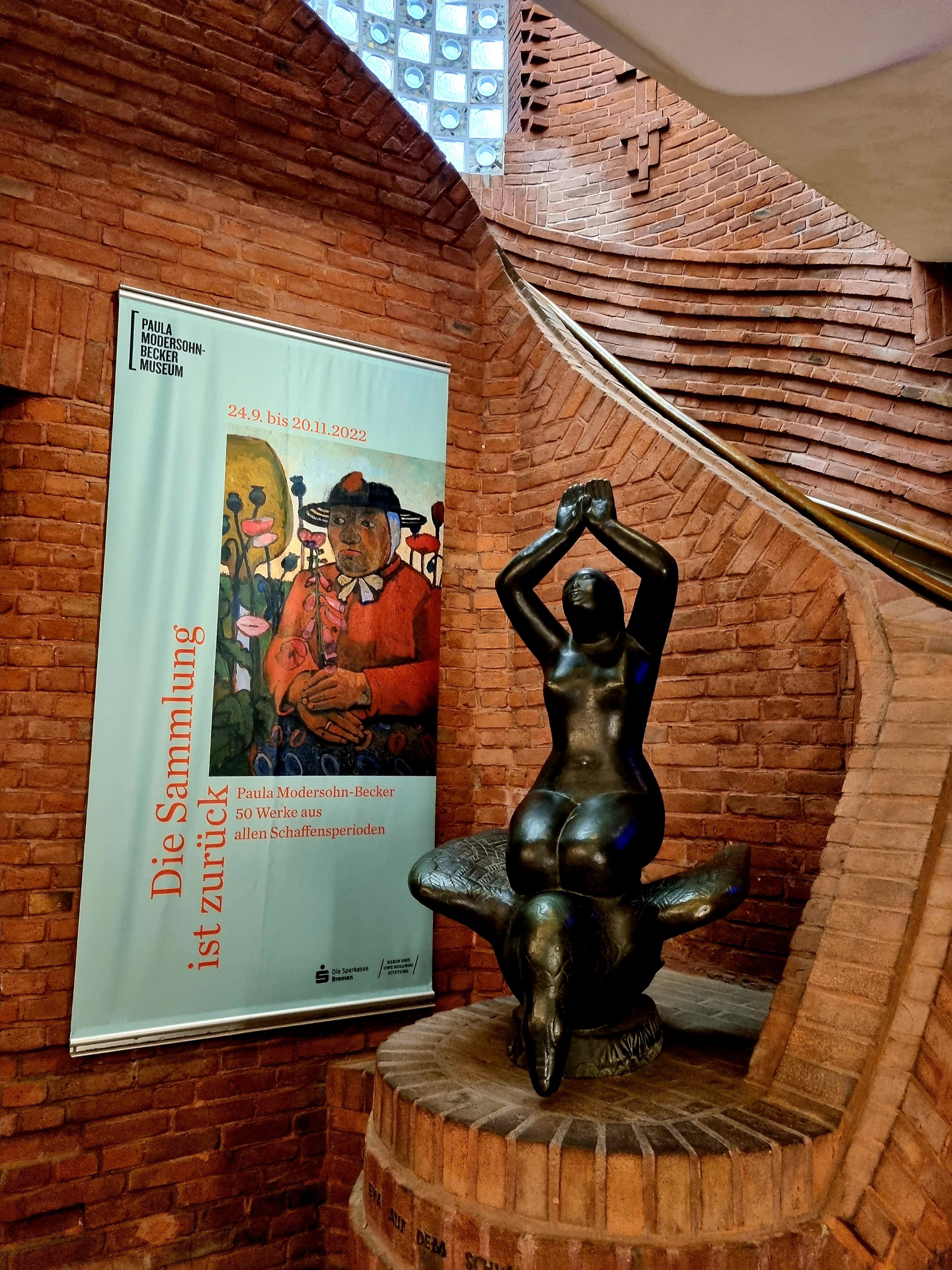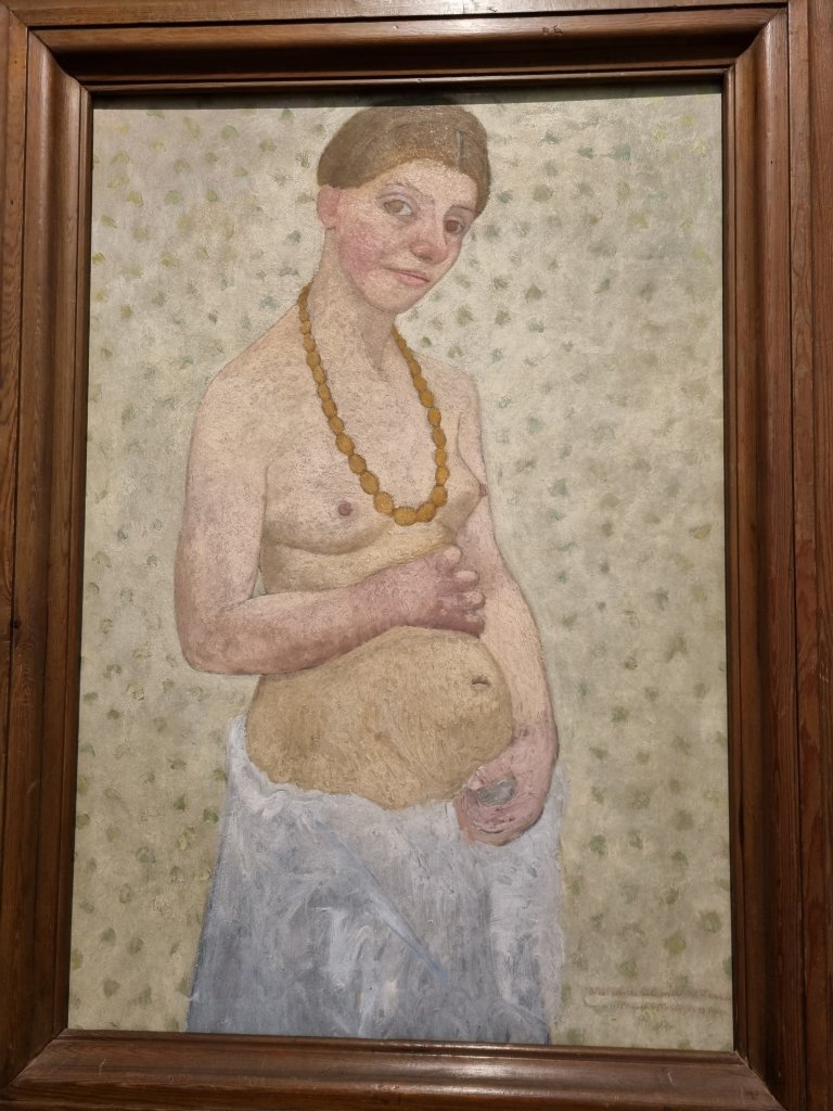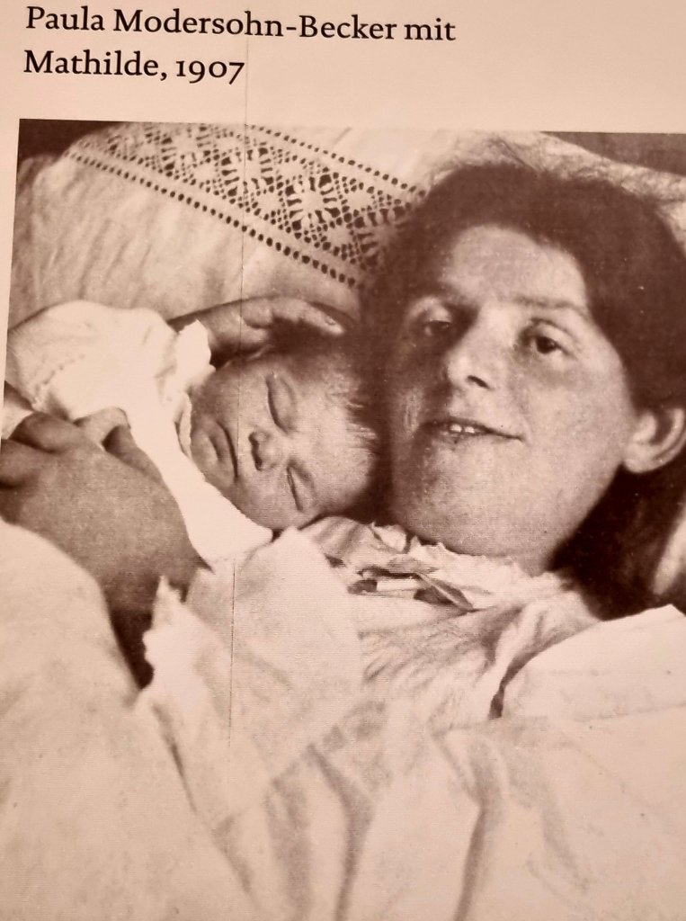 die neue Ausstellung im PAULA MODERSOHN-BECKER- Museum mit seiner spannenden Architektur in der Böttcherstraße in Bremen; besonders berührend fand ich auch die Fotos, die ihr Werk begleiteten. Sie belegten z. B. ihren großen, immer auch in ihrer Malerei ablesbaren Kinderwunsch (angesichts ihres tragischen frühen Todes kurz nach der Geburt ihres Kindes) und die Tatsache, dass sie auch selbst die großen dunklen Augen hatte, die ihre Portraits charakterisieren.