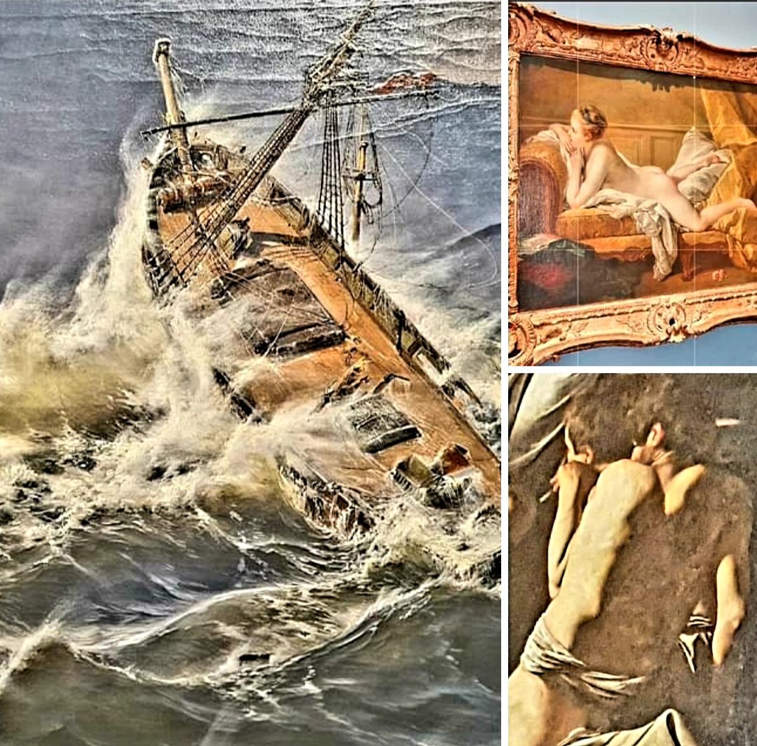 3 von den bevorzugten Sujets völlig unterschiedliche Künstler hätten am 29.9. Geburtstag: ANDREAS ACHENBACH (1815-1911) – ich sah den in diesen Tagen seltsam passenden „Seesturm vor der norwegischen Küste“ von 1837 dieses zu den Düsseldorfer Romantikern gehörigen Künstlers 2021 im Düsseldorfer Kunstpalast – , der französische Rokokomaler FRANÇOIS BOUCHER (1703-1770) mit seiner, wie das Kölner Wallraf-Richartz Museum titelte, Ahnherrin eines Pin-up Girls und der große italienische Barockkünstler CARAVAGGIO (1571-1610), von dessen Gemälde in typischer Schatten-und-Licht-Dramatik ich im Jahr 2018 in Rom nur dieses Detail fotografierte.