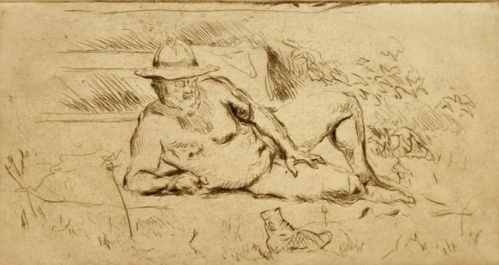MAX SLEVOGT (1868-1932). Im September war er an seinem Todestag Artist of the Day. Heute wäre sein Geburtstag, und vor wenigen Wochen entdeckte ich ihn mit diesem genau vor 100 Jahren entstandenen Selbstbildnis auf Papier in der Ausstellung „Mannsbilder“ in der Kunsthalle Bremen