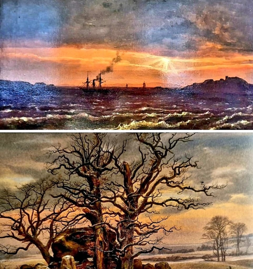 Der norwegische Romantiker, der mit Caspar David Friedrich eng befreundet war und 20 Jahre seines Lebens in Deutschland verbrachte, starb am 14.10.1857. Die Motive seiner Bilder jedoch sind meistens in der norwegischen Heimat verwurzelt: „vor der norwegischen Küste“ von 1850 (gesehen im Schloss Oldenburg) und das im Düsseldorfer Kunstpalast gesehene „Hünengrab“ von 1824/25