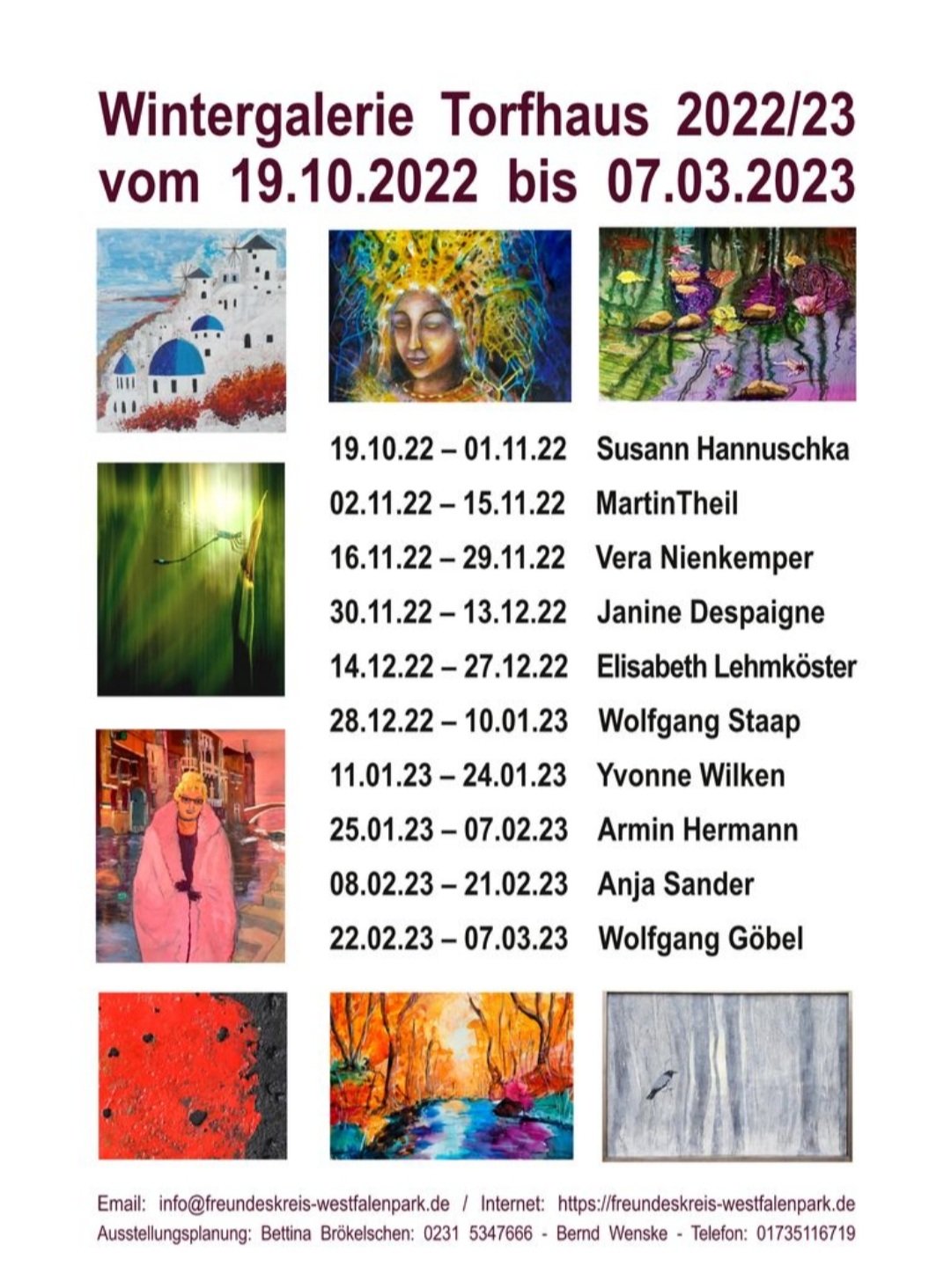 18. Oktober 2022 In eigener Sache: save the Date!!! Teilen mit: Auf X teilen (Wird in neuem Fenster geöffnet) X Auf Facebook teilen (Wird in neuem Fenster geöffnet) Facebook Gefällt mir Wird geladen … Veröffentlicht von yvonnenodaywithoutfinearts Oberstudienrätin für Englisch und Französisch im Ruhestand. Kunstschaffend und -begeistert und reisefreudig Zeige alle Beiträge von yvonnenodaywithoutfinearts