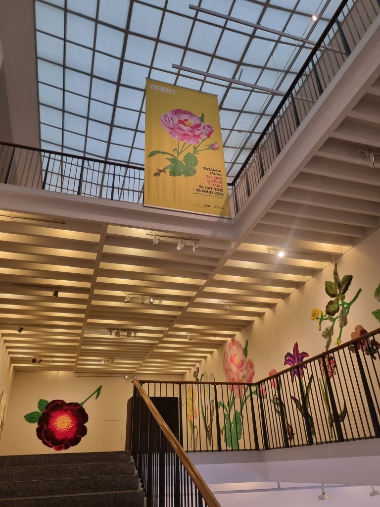 recommended: eine neue Ausstellung im MAKK in Köln: SUSANNA TARAS und ihre überlebensgroße farbenprächtige Blumenwelt in Wolle, die so traumhaft schwebend an den Wänden des Kölner Museums für angewandte Kunst angebracht sind, dass sie die Betrachter in eine andere Welt entführen – über 3 Etagen🌺🌸