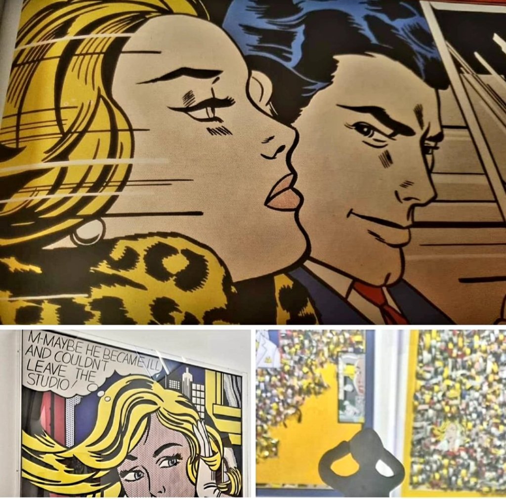Und außer LEE KRASNER wurde noch ein anderer Künstler am 27.10. geboren: ROY LICHTENSTEIN (1923-1997). „Im Auto“ entstand 1963, „M=Maybe…“ 1965. Das letzte sah ich im Museum Ludwig in Köln. Dabei hätte ich mich nur in der Wintergalerie in Dortmunds Innenstadt umsehen müssen: Helga Hoicke hat 2 großartige Hommagen an Roy Lichtenstein kreiert (3. Foto).
