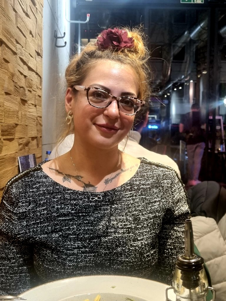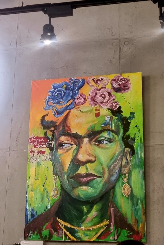 Similar but not the same: Deniz mit ihrem Haarschmuck und Frida Kahlo mit Haarschmuck, gemalt von FELIX MARTIN, zu sehen im Dortmunder Restaurant The Pasta Heaven