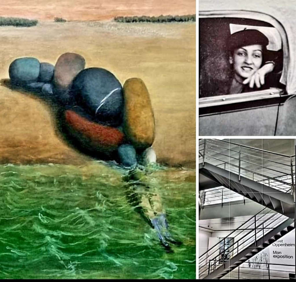 MERET OPPENHEIM (1913-1985) – farbenfroh in ihrer Malerei wie die beiden heutigen Geburtstags- Künstler Seifert und O’Keeffe – hat heute ihren 37. Todestag. In der großen Einzelausstellung im Kunstmuseum Bern vor einem Jahr sah ich die ungeheure Vielfalt ihres Werks mit den verschiedensten Materialien, wobei ich ihre „Steinfrau“ von 1938 (einfach Öl auf Leinwand) besonders mochte.