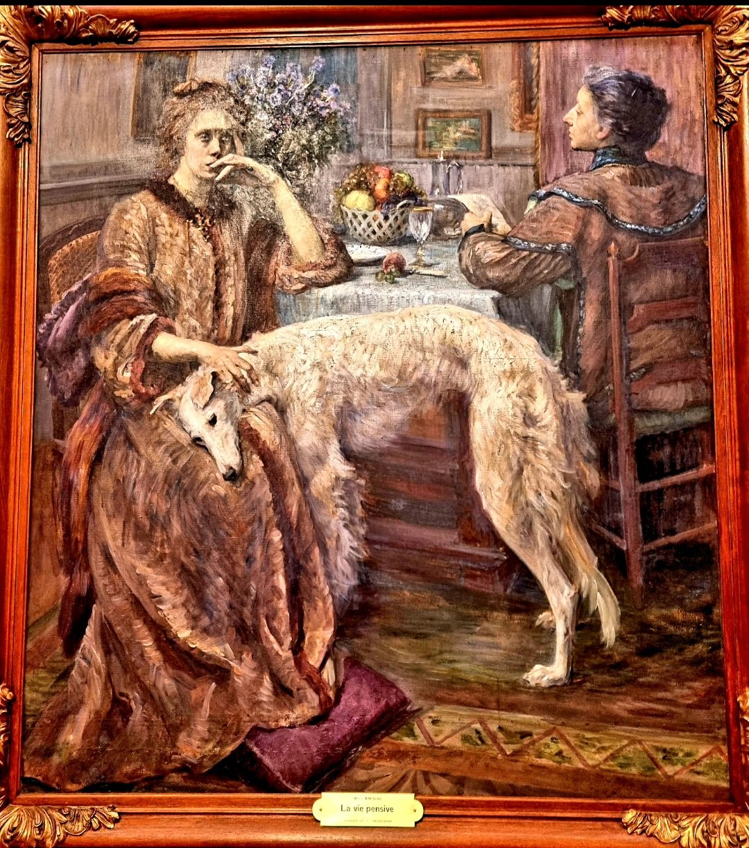 Das Bild von LOUISE BRESLAU (1856-1927), eine deutsch -schweizerische Künstlerin, die am Nikolaustag geboren ist und die meiste Zeit ihres Lebens in Paris verbrachte, heißt „la Vie pensive“, wurde 1908 gemalt und hing im April dieses Jahres im Musée Cantonal in Lausanne.