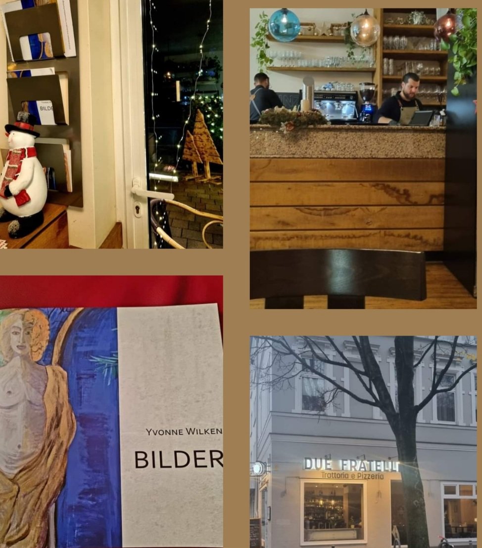 hier sehe ich meinen Katalog zu meiner Freude schon in La Conchiglia Dortmund liegen, bald werden einige meiner Bilder im „Geschwisterlokal“ DUE FRATELLI Beurhausstr./Humboldtstr. zu sehen sein❣ Ich freue mich!!! Kunst und Kulinarik gehören zusammen!!!🖼🎨🍝🍕