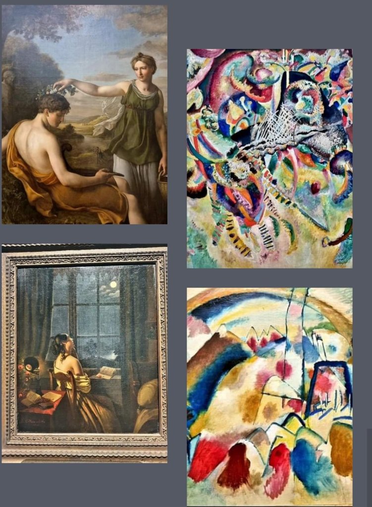 „Sentimentale“ (Mondbetrachterin) aus dem Jahre 1846 von JOHANN PETER HASENCLEVER, der am 16.12.1853 gestorben ist, war einer der heimlichen Stars der Düsseldorfer Ausstellung „Caspar David Friedrich und die Rheinischen Romantiker“ im Kunstpalast. WASSILY KANDINSKY (1866-1944), der Mitbegründer der Künstlergruppe “ der Blaue Reiter“ dagegen hätte heute seinen 156. Geburtstag. Seine Werke „Fugue“ und „Landschaft mit Kirche (und roten Flecken)“ von 1913 (unten) fotografierte ich in der Fondation Beyeler in Basel vor wenigen Jahren und vor wenigen Wochen im Museum Folkwang Essen.