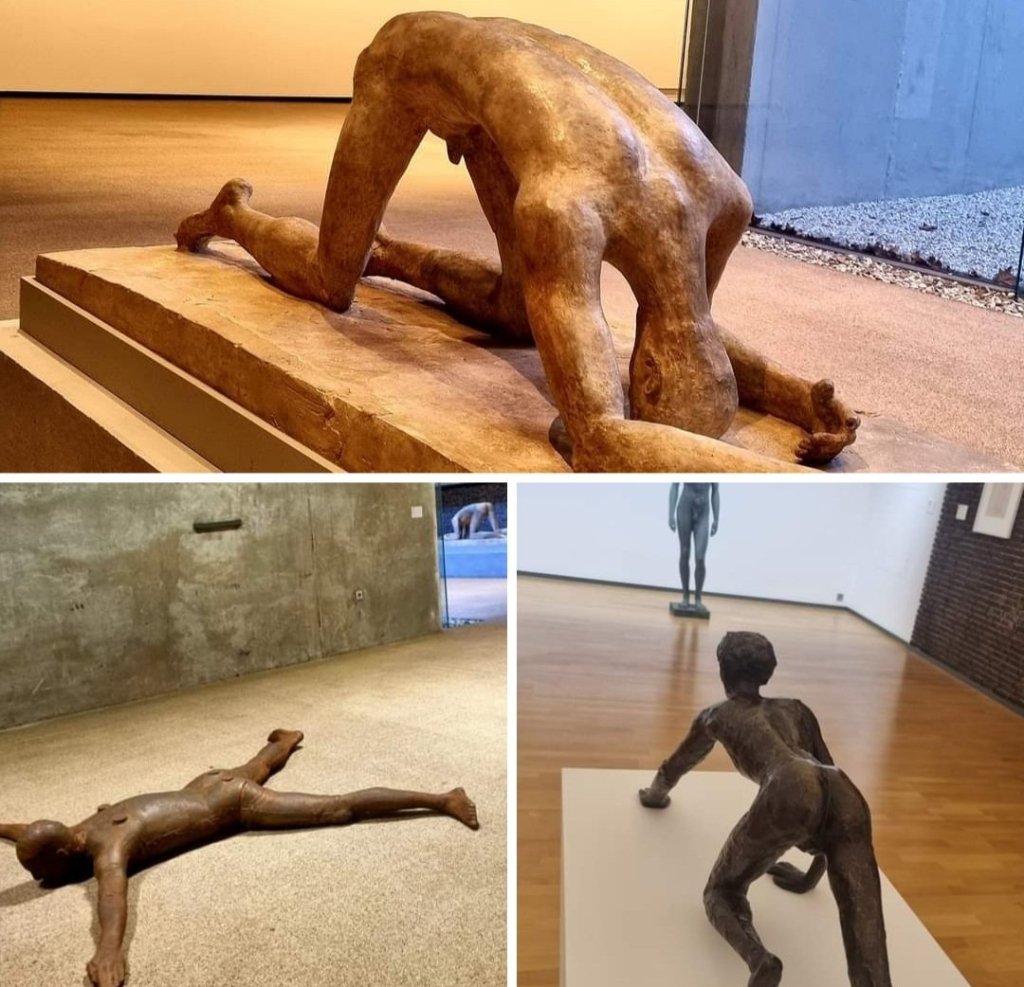 Zum heutigen 142. Geburtstag von WILHELM LEHMBRUCK kann ich noch ein similar but not the same bieten, denn das Lehmbruck Museum Duisburg zeigt in 2 Ausstellungen zur Zeit 2 Künstler, die deutlich im Dialog mit Lehmbruck gesehen werden können. Z. B. mit seinem „Gestürzten“ von 1918. Es sind der 1950 geborene Brite ANTONY GORMLEY mit „Close“ von 1998 (einer am Boden liegende Plastik) und der Deutsche NORBERT (1922-1984) mit dem „Kriechenden“ von 1948. Auch die Daten der Plastiken haben parallele Aspekte.