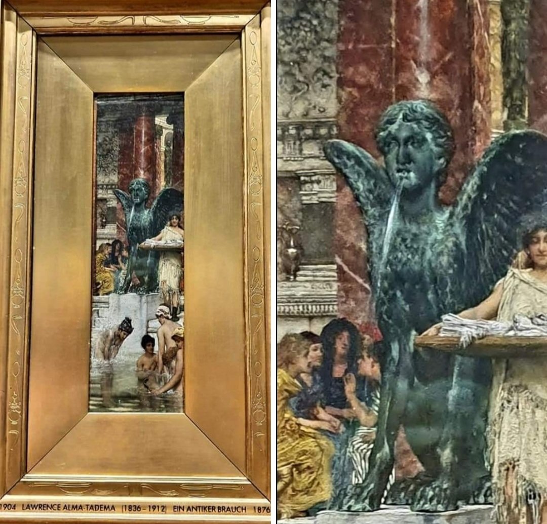 der niederländische Maler mit britischem Pass, der das besondere Vertrauen von Queen Victoria hatte, hätte heute Geburtstag: Lawrence Alma-Tadema (1836-1912). Sein 1876 entstandenes Bild „ein antiker Brauch“ , das in der Vergrößerung die für den Künstler typische Detailtreue zeigt, sah ich zuerst 2019 in der Hamburger Kunsthalle .