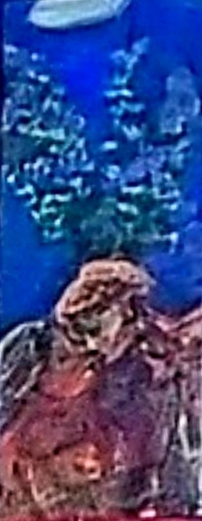 Ich mag normalerweise nicht das Wetter im Februar. Aber dieser Monat ist trotzdem etwas Besonderes für mich: mein Geburtstagsmonat und der Monat des Wassermanns. Dieser Wassermann im Bild verlässt mich bald in ein neues Zuhause. Und mein küssendes Paar unterm Pflaumenbaum mit weißer Wolke über sich ist eine Hommage an Bertolt Brecht – ein weiterer Wassermann, der in einer Ballade genau die Situation beschreibt, die ich auf den Tag genau 100 Jahre später im Jahr 2020 gemalt habe. Sie wird bald auch im „Due Fratelli“ in der Humboldtstr.71 hängen.