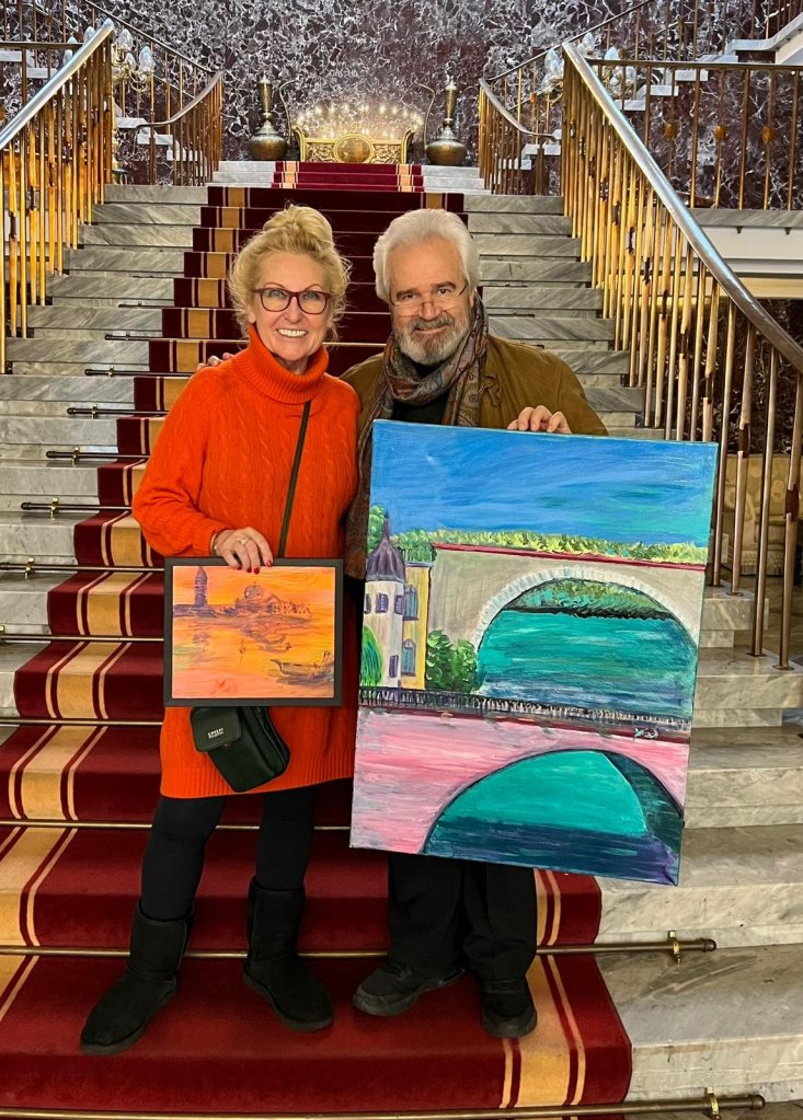 Ein wundervolles Geschenk machte mir mein guter Schweizer Freund Robert Kahnt , der mir gestern am Tag nach meinem Geburtstag 2 Bilder abkaufte, die jetzt den Weg nach Zürich antreten („Bern“ und „Venedig im Abendrot“). Ein ebenfalls großartiges Geschenk war der Service von Julia Prang und ihrem The Pasta Heaven Team, die phantastisches Essen, Trinken und eine von der Köchin Maria gebackene kunstvolle Birthday Torte boten. Und last, not least schenkten mir Felix und Johanna herrliche Musik als und zum Dessert❣