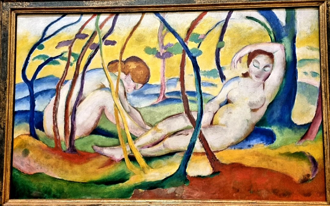 FRANZ MARC (1880-1916), PAULA MODERSOHN BECKER (1876-1907) and TOMMASO OTTIERI (*8.2.1971) – sie haben nicht nur künstlerische Betätigung und Sternzeichen gemeinsam: die 3 Künstler, die am 8.2. geboren sind, haben auch gern die Natur einfließen lassen in ihre Kunst: MARC mit seinen berühmten Tierbildern, aber auch mit den „Akten unter Bäumen“ (1911 gemalt, gesehen 2022 im Museum Folkwang in Essen), MODERSOHN- BECKER ebenfalls in dem viel früheren „Akt mit Vogel“ (gesehen im Modersohn-Becker Museum in Bremen 2022) spielt Natur mit. Und OTTIERI, dessen Triptychon „Paris des Délices“ von 2017 ich 2018 in einer Galerie in Rom sah, malt seine Bäume so unglaublich realistisch (oil on panel), dass man zunächst von einem Foto ausgeht.