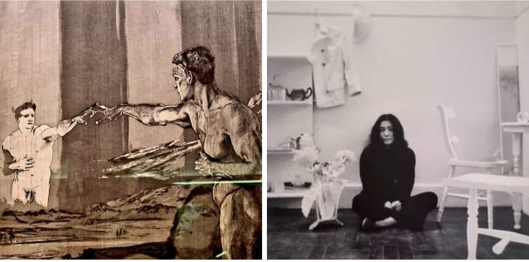 Geburtstag hätte MAX KLINGER (1857-1920), Bildhauer, Maler und Graphiker, dessen Skulpturen mir 2019 in Dresden schon auffielen. Vor gar nicht langer Zeit sah ich seinen männlichen Akt des „Philosophen“ in der Ausstellung „Mannsbilder“ in der Kunsthalle Bremen . YOKO ONO begeht heute den 90. Geburtstag. Das Kunsthaus Zürich widmete ihr letztes Jahr eine Ausstellung, in der auch dieses Foto hing, das sie in einer Performance zeigt.