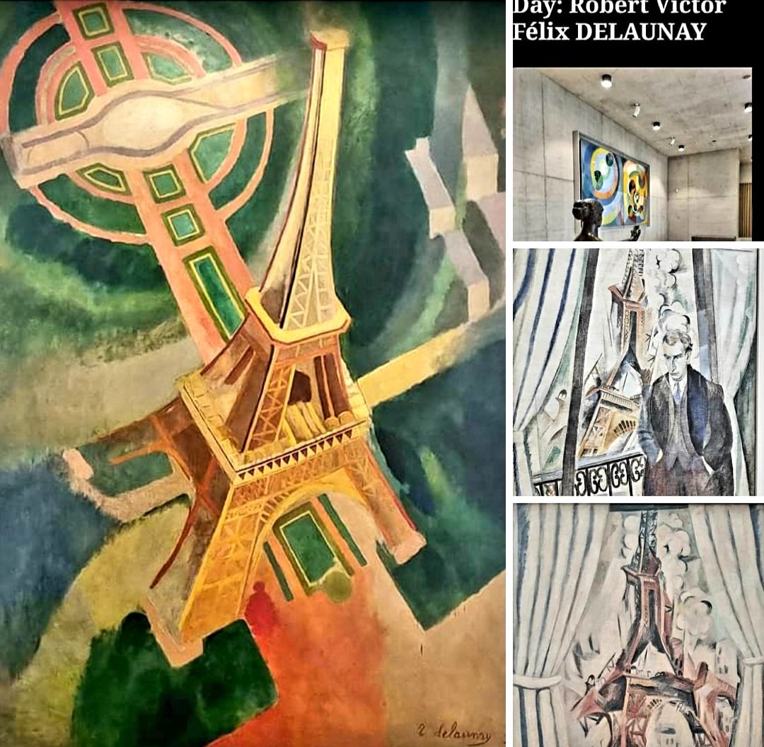 ROBERT DELAUNAY (1885-1941) hätte heute Geburtstag. Der Autodidakt wurde vor allem durch seine Eiffelturmbilder berühmt. Dass ich das 1., das ich schon im März in Berlin, Neue Nationalgalerie bewundert habe, besonders liebe, schrieb ich schon im #yvonneblog am 23. März. Es stammt aus dem Jahr 1928. 1910 hat er ihn im 4. Bild im „le poète“ zeichnerischer gemalt (gesehen 2017 in Paris, @ Centre Pompidou) ebenso wie den von Gardinen umgebenen Eiffelturm ungefähr zur selben Zeit (@ K 20, Düsseldorf). Und aufgelöst in Ringen und Kreisen scheint das scheinbar geometrisch-abstrakte Bild aus dem Jahr 1930, das man im neuen Teil des Kunsthaus Zürich hinter der Skulptur von ARISTIDE MAILLOL findet, auch von den Parkanlagen des Eiffelturms beeinflusst.