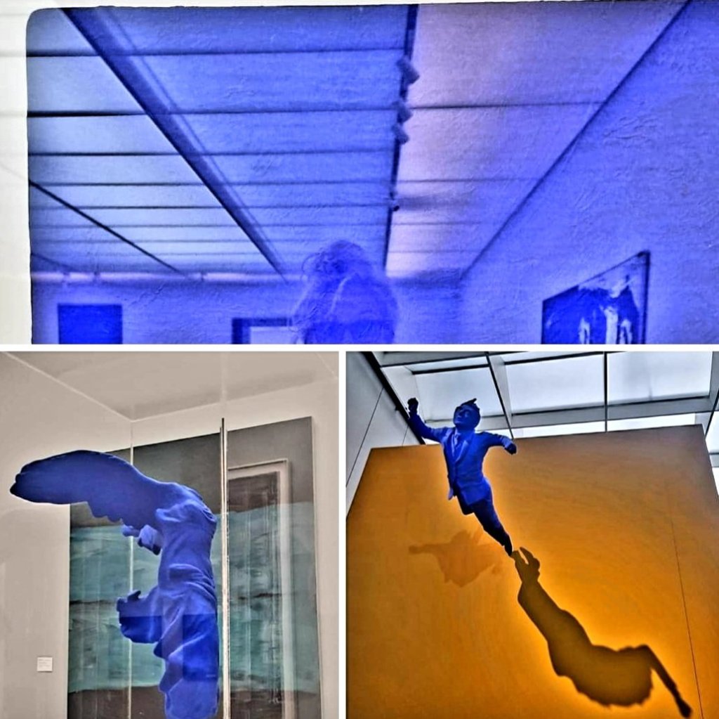 Am 28.4.1928 begann das kurze Leben des YVES KLEIN. Im letzten Jahr sah ich sein spiegelndes Bild “ monochrome bleu“ von 1957 im LWL Kunstmuseum Münster (Kunstharzfarbe auf Nessel- und Hartfaserplatte). Seine in seinem Todesjahr 1962 entstandene „Nike von Samothrake“ aus Gips entdeckte ich vor einiger Zeit im Sprengel Museum Hannover . Und die von der Decke hängende YVES KLEIN gewidmete Skulptur des Designers INGO MAURER „Remember Yves“ verblüffte mich in der Münchener Antikensammlung im Februar.