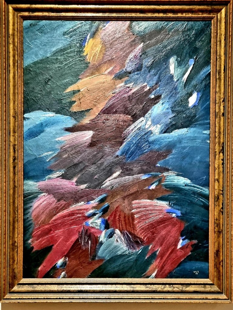 Noch bis zum 27.8.23 gibt es die Ausstellung eines interessanten Frankfurter Künstlers: ERNST WEIL (1919-1981). Mich haben seine Farben, sein Verhältnis zur Abstraktion und seine Entwicklung fasziniert – z. B. „Strand“ von 1971, der „Boxer“ von 1959, die „Sitzende“ von 1947.