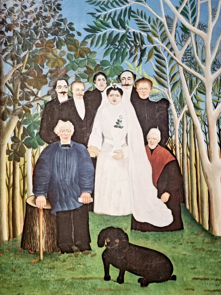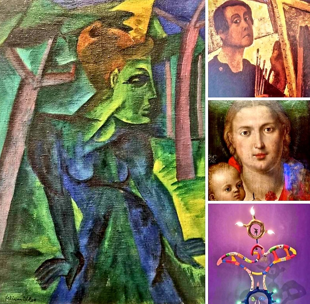 der französische Autodidakt HENRI ROUSSEAU (1844-1910), der gerne als naiver Maler bezeichnet wird, ist aber in Wirklichkeit wirklich nicht naiv, sondern ein wichtiger Wegbereiter für den Surrealismus. In diesem Bild „Hochzeit“, das ich im Februar im Lenbachhaus und Kunstbau München sah, lachte mir vor allem der Dackel der Familie entgegen. Ebenfalls Geburtstag am 21.5. hätte heute der deutsche Expressionist CONRAD FELIXMÜLLER (1897-1977) – seine „Frau im Wald“ hat er 1918 gemalt, ich sah sie im Bochumer Situation Kunst – Museum unter Tage vor 3 Monaten. Die Schweizer Künstlerin HELEN DAHM (1878-1968) malte ihr „Selbstbildnis als Malerin“ 1927. Der berühmteste der 4 Geburtstagskinder ist ALBRECHT DÜRER (1471-1528): Seine „Muttergottes mit Nelke“ aus dem Jahr 1516 sah ich im Februar in der Münchner Alten Pinakothek. Für die 4. Künstlerin ist der 21.5. der 21. Todestag: NIKI DE SAINT-PHALLE (1930-2002). Die Französin mit Schweizer Pass schuf ihre „Déesse de Lumière“ in den Jahren 1980/81. Ich fotografierte sie im April dieses Jahres in der SCHIRN KUNSTHALLE FRANKFURT .