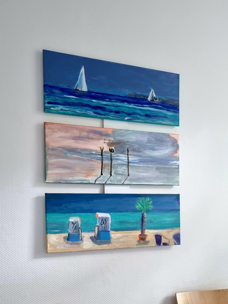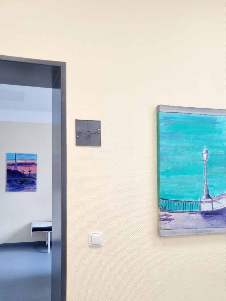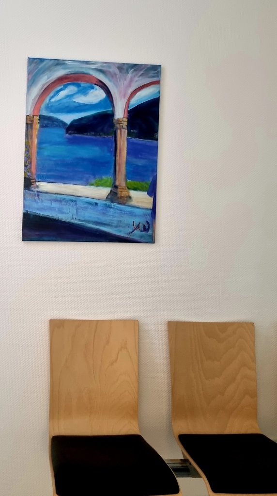 und das sind meine Farben für die 1. Arztpraxis, die ich ausschmücken darf. Da die Auftraggeberin, Frau Dr. Hinrichs, im Dortmunder Klinikviertel (altes Kinderklinikgebäude, Beurhausstr.47), auch einen Hang zu Frankreich hat, habe ich natürlich Französisches ausgesucht an. Aber auch die Schweiz ist mit von der Partie. Keine Sorge: im Due Fratelli gleich nebenan hängt noch genug von mir – statt Paris jetzt Venedig in Top Position😉