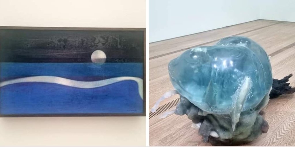 in der Fondation Beyeler in Riehen bei Basel: über die derzeitigen spektakulären Basquiat- und Salcedo-Ausstellungen hinaus haben mich die vielseitigen Werke fasziniert, die für die Ausstellung „THE MIND’S EYE, images de la nature de Claude Monet à Otobong Nkanga“ zuaammengetragen wurden. Ich fühlte mich hier im gewissermaßen „blauen“ Raum sehr wohl: neben Werken von MAX ERNST findet sich hier das Kunstobjekt, das der Ausstellung seinen Namen gab: „the mind’s eye“, 2021 vom französischen Künstler PIERRE HUYGHE geschaffen.