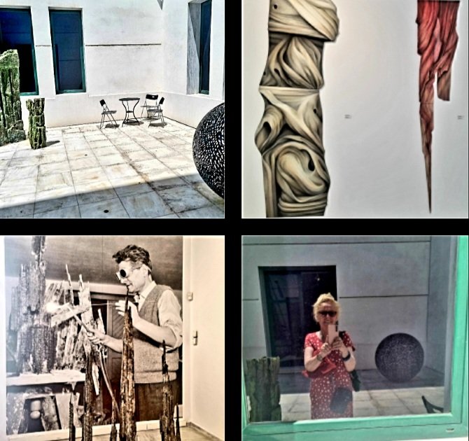 what I liked especially @ Macedonian Museum of Contemporary Art in Thessaloniki are the sculptures and installations of ACHILLEAS APERGIS and IRENE APERGIS – also in their way of being presented half outside, half inside the museum. ACHILLEAS was born on 31 Jan.1909 and died in 1984, IRENE lived from 1921-2014.