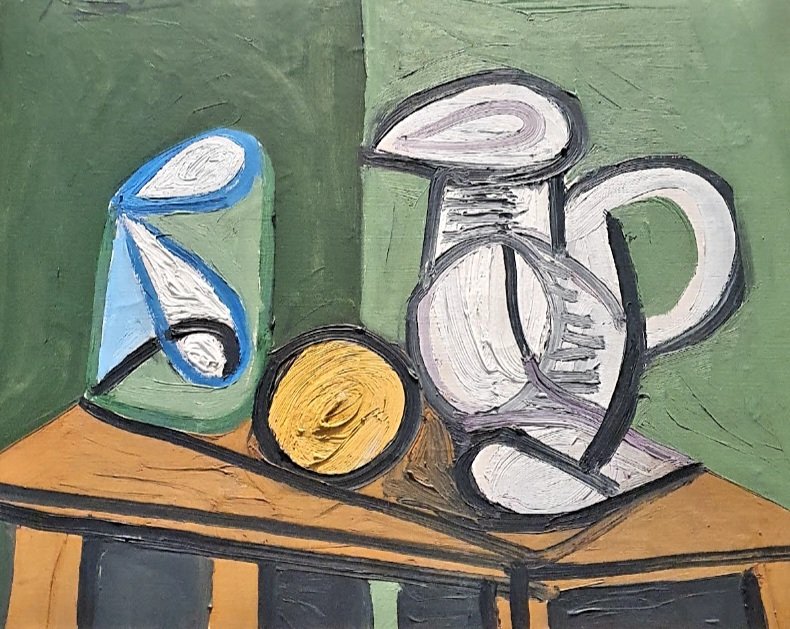 am 23.7.1944 signiert: „nature morte“ von PABLO PICASSO, gesehen 2020 im K20 – Kunstsammlung NRW in Düsseldorf Der rumänische Maler ARTHUR ARON SEGAL (1875-1944) hätte heute Geburtstag. Sein Bild „Mensch, Pferd, Wagen“ von 1918 sah ich im Februar im Situation Kunst – Museum unter Tage in Bochum. @Museum Ludwig Köln : heute ist der letzte Tag der großen Einzel- Ausstellung „Ursula – das bin ich! Na und?“ der URSULA SCHULTZE-BLUHM (1921-1999), die in ihren Bildern aus 5 Jahrzehnten (50er-90er) ihrem sehr speziellen autodidaktischen Stil treu blieb und sich mit ihrem Künstler-Ehemann Bernard Schultze im selben Atelier arbeitend doch gegen ihn durchsetzen konnte. Ich gebe zu, dass ich nicht alles in ihrer Malerei mag (Gesichter, Insekten, Pelz etc.), doch ist die künstlerische und vor allem farbliche Gestaltung ihres ureigenen Universums so packend, dass der Besuch definitiv lohnte – auch die Idee mit der goldenen Grundierung werde ich mal in meiner Malerei aufnehmen. Hier folgen Bilder aus 4 Jahrzehnten: links oben: „Januskopf“ von 1964/66, darunter „südliche Landschaft mit Katzengott“ von 1970, oben rechts ihr Köln-Bild von 1972, darunter „Abenteuer in Basel“ von 1984 und schließlich das anrührende „für dich, lieber Bär“, zu Weihnachten 1993 74jährig für ihren Mann gemalt.