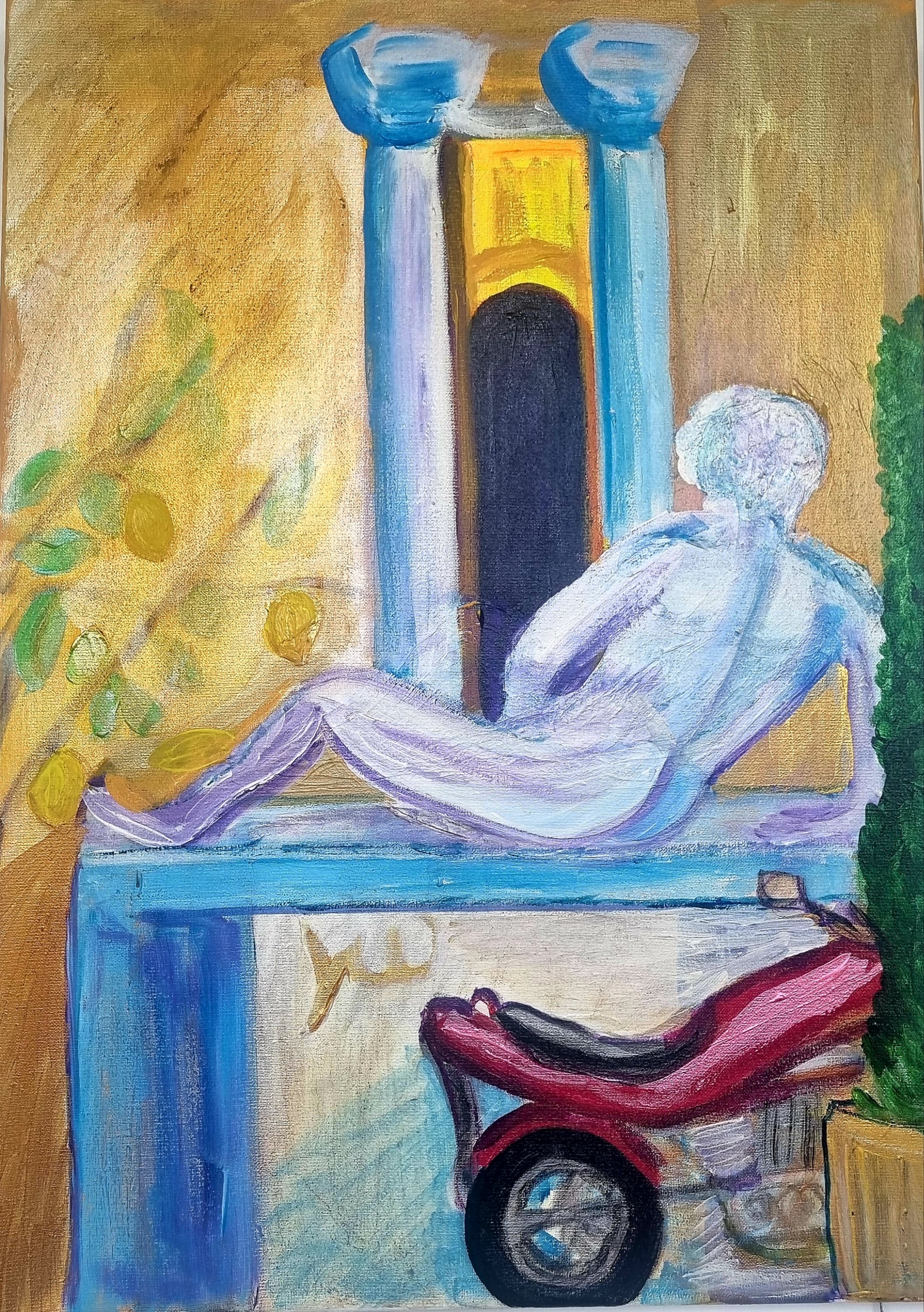 malenudes by Yvonne Wilken @ KUN:ST International: Ausstellung in der Orangerie Schloss Schwetzingen : zum Thema #missionrokoko habe ich 2 männliche Akte – die Rokokoskulptur des „Drachentöters“ vor dem Schloss Karlsruhe unter dem Titel „killing the beast“ und die römische Skulptur mit Motorrad unter dem Titel „Italian corner“.
