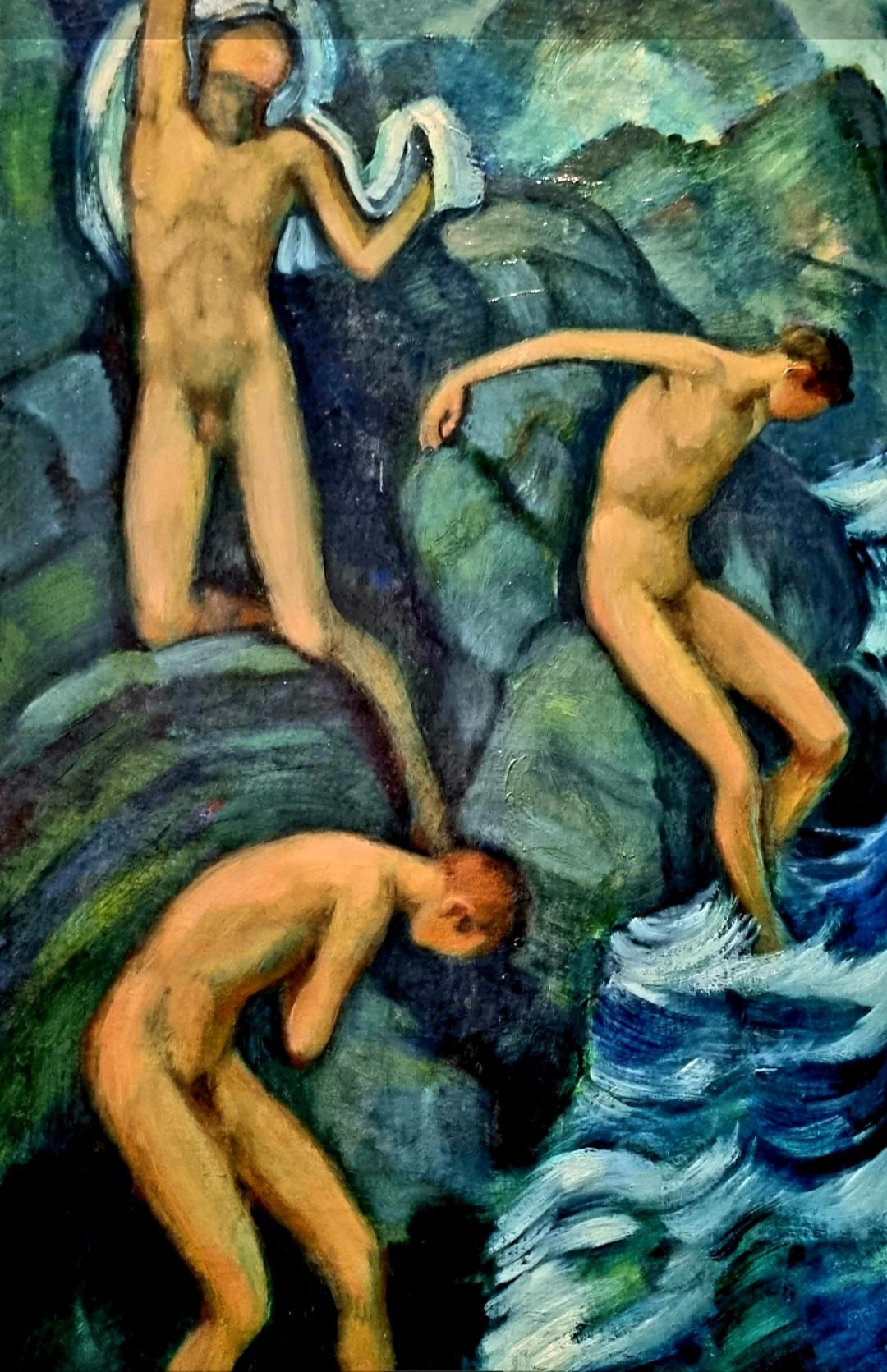 LUDWIG VON HOFMANN (1861-1945) hätte heute Geburtstag. Seinen „Gebirgsbach“ fotografierte ich letztes Jahr in der Kunsthalle Bielefeld. Der Kontrast zwischen den Farben der Körper und denen der Steine und des Wassers lässt den Betrachter die Kühle fühlen.