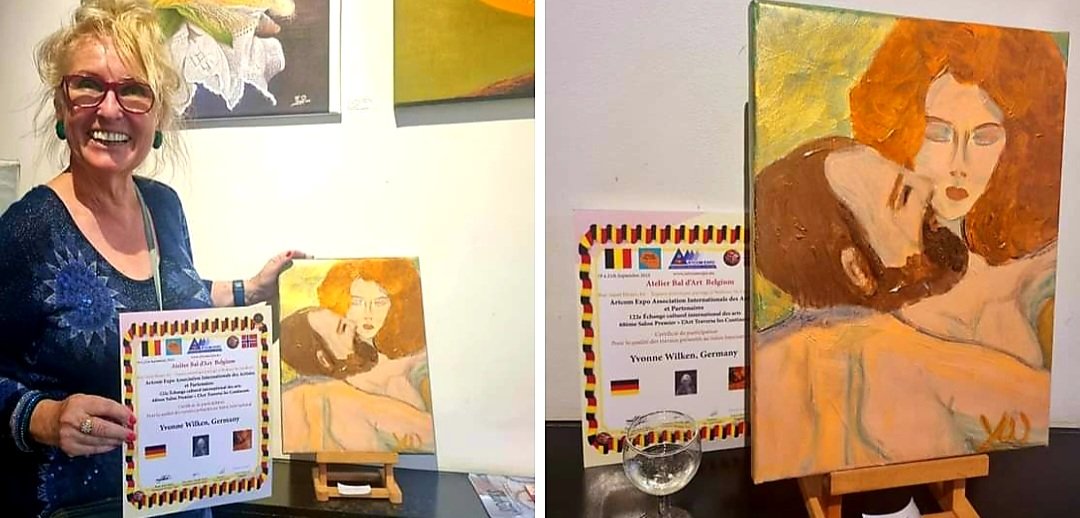 Gestern war unsere Vernissage der ART COM EXPO, organisiert von Baronesa Jiselda Salbu in der Galerie BAL D’ART in Brüssel. Es hat Spaß gemacht, mein Bild „le peintre et son modèle – hommage à Gustav Klimt“ dort auszustellen.