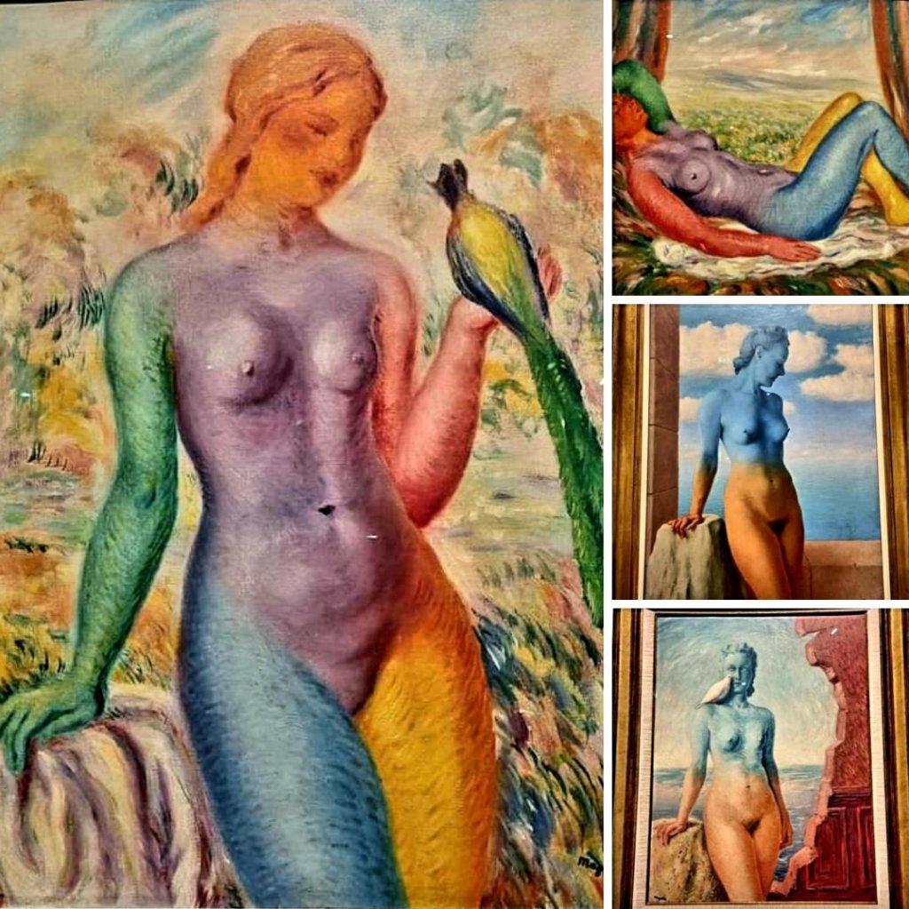 weniger bekannt sind die Akte von RENÉ MAGRITTE, die in dem Bereich, der ihm im Musée Royal Des Beaux Arts, Bruxelles gewidmet wurde, zu sehen sind. Es war das 1. Museum, das ich von den Museen Brüssels besuchte. Nicht nur bei seinen Akten fällt auf, dass ihn bestimmte Themen immer wieder beschäftigt haben. Manchmal verwendet er sogar dieselben Titel. Von links nach rechts, oben nach unten: la danse/the harvest/ la Magie noire/ magie noire
